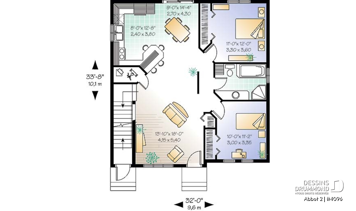 Largeur 32'0" Profondeur 33'8"