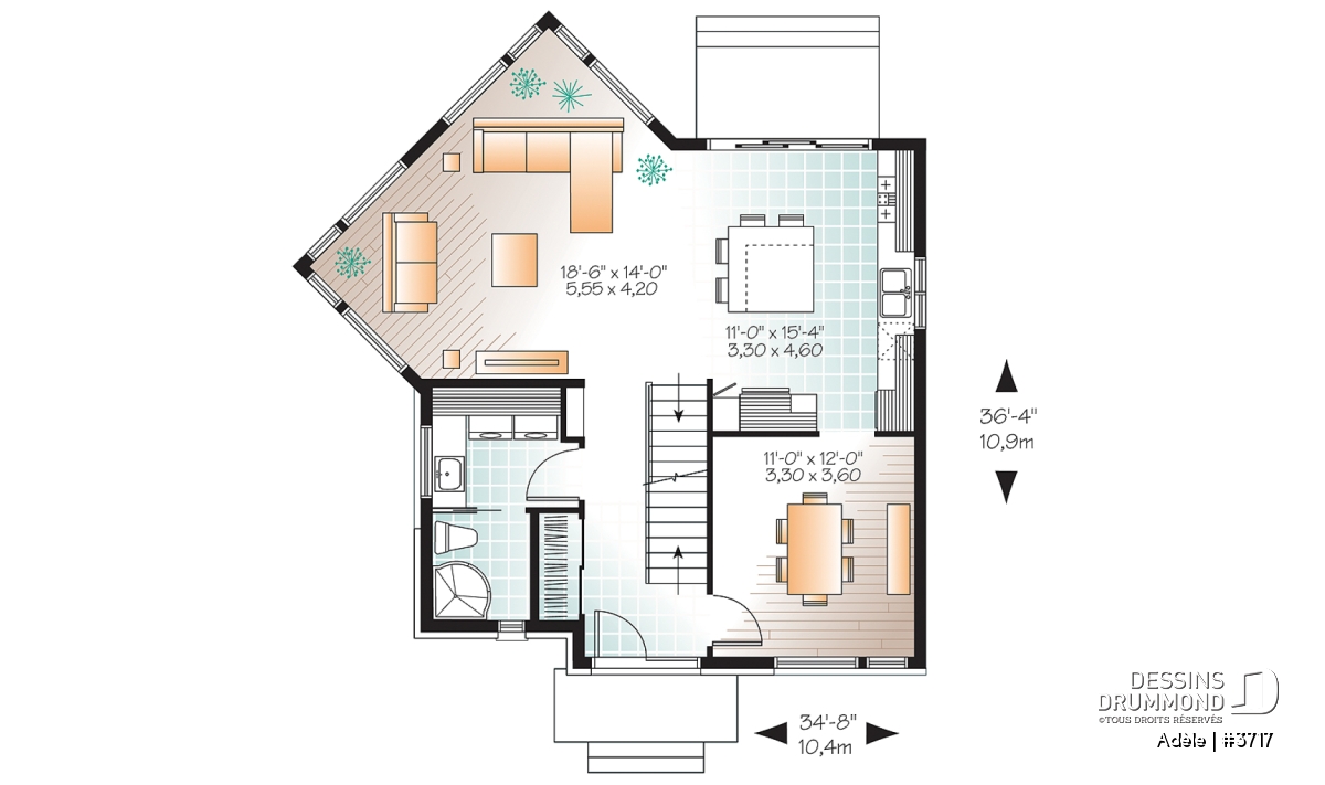 | Largeur | 34'8" | Profondeur | 36'4" |