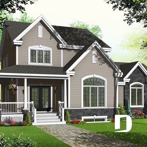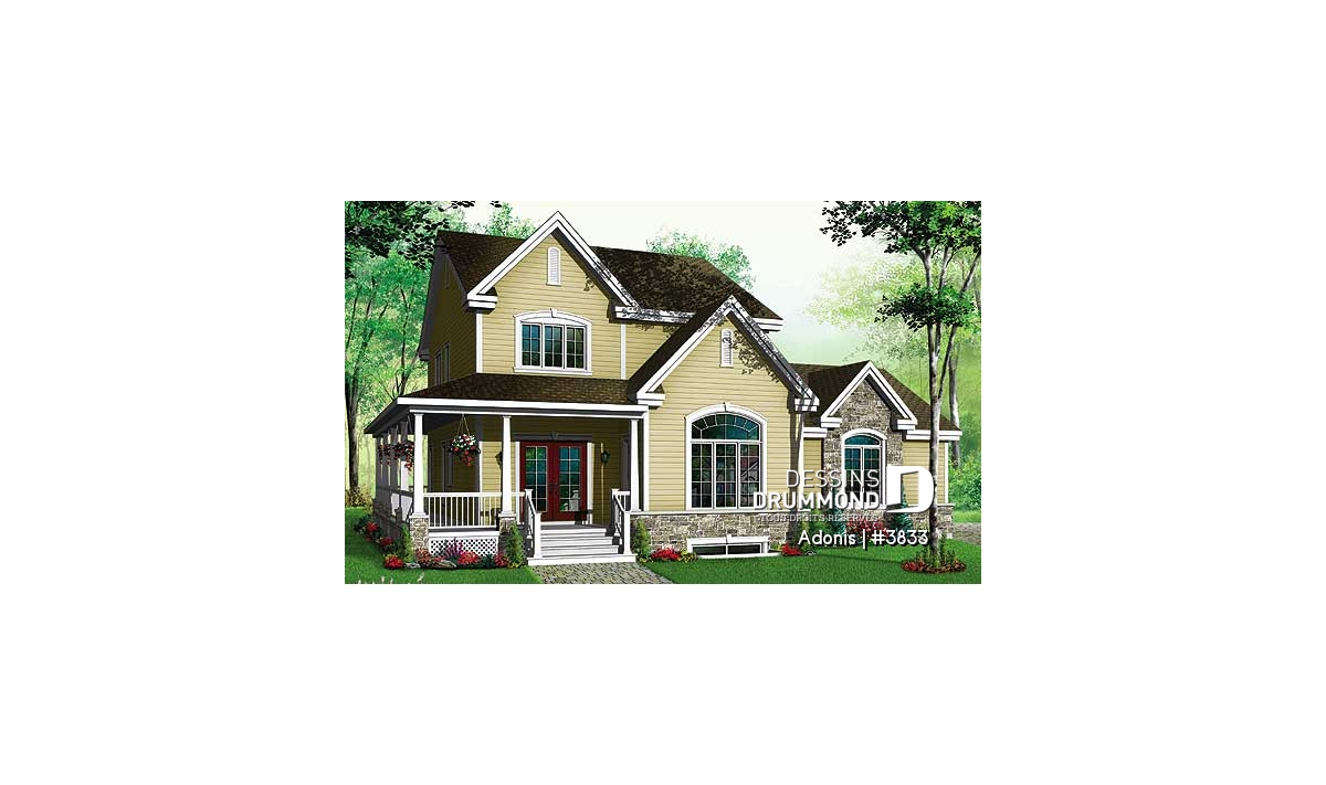 Plafond à 9pi au rez-de-chaussée, galerie couverte reliant l'avant à l'arrière, garage double avec descente au sous-sol, dînette tout en lumière.