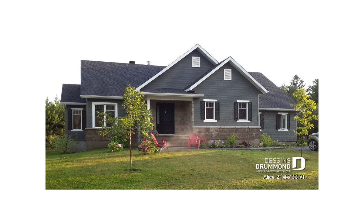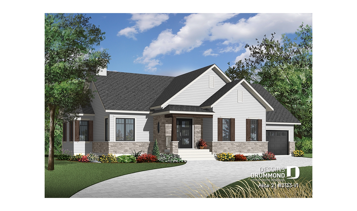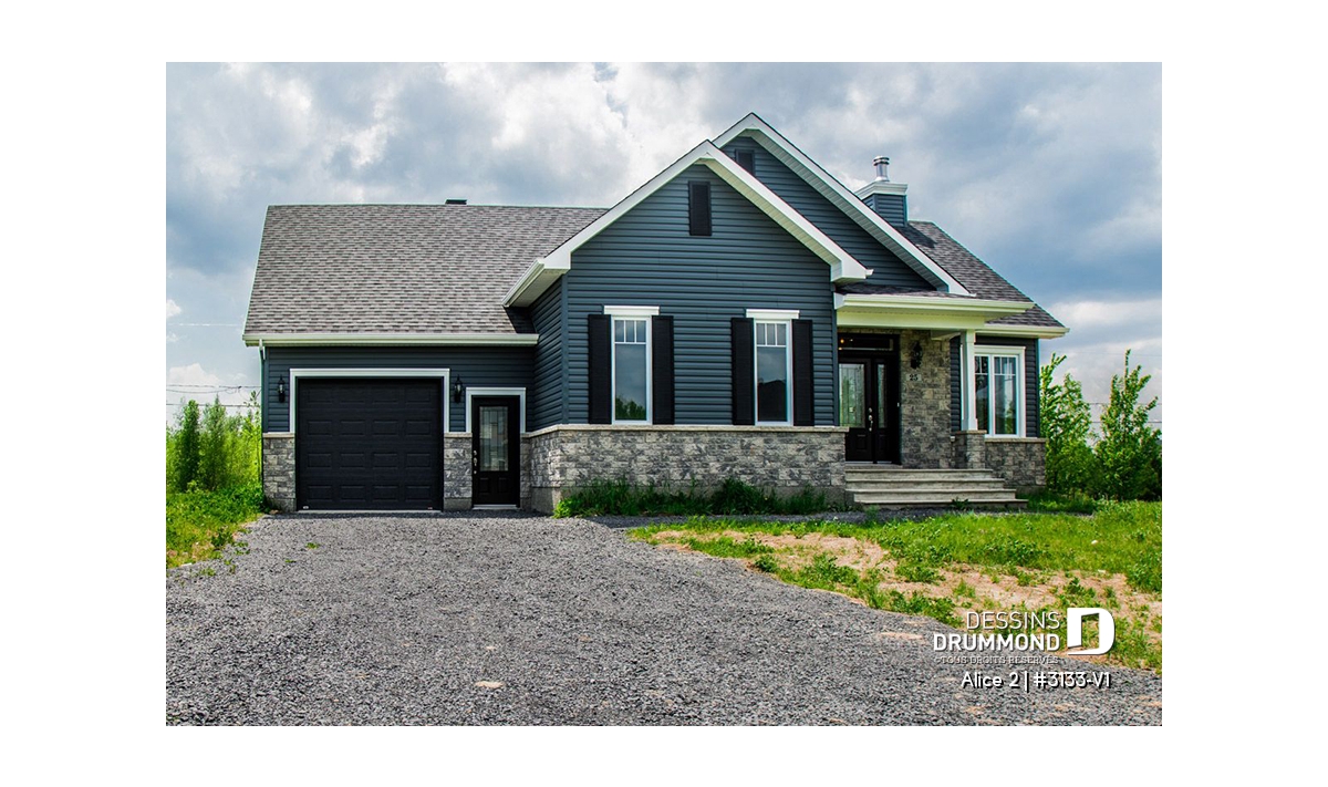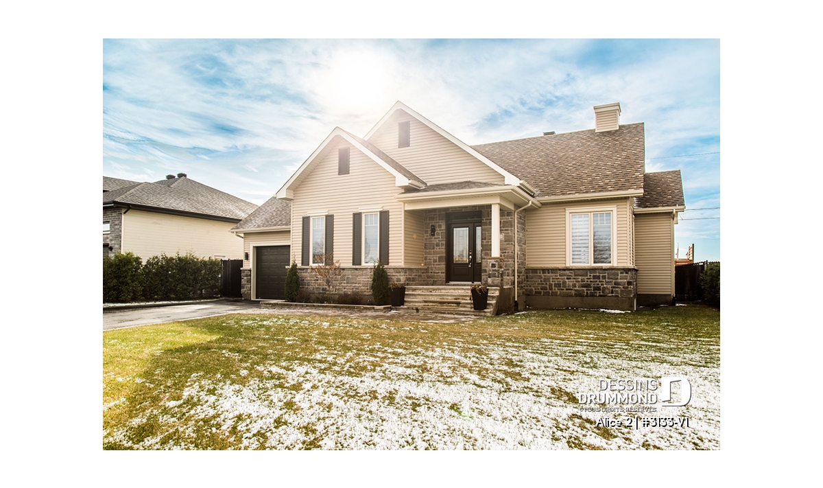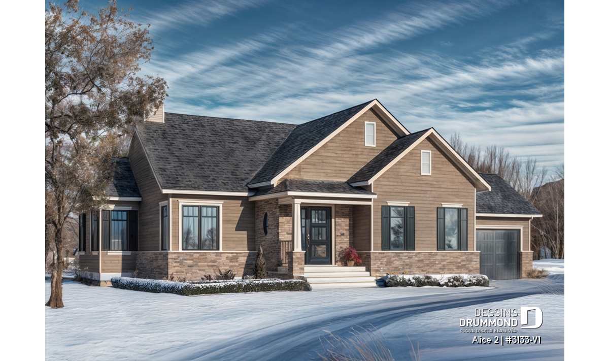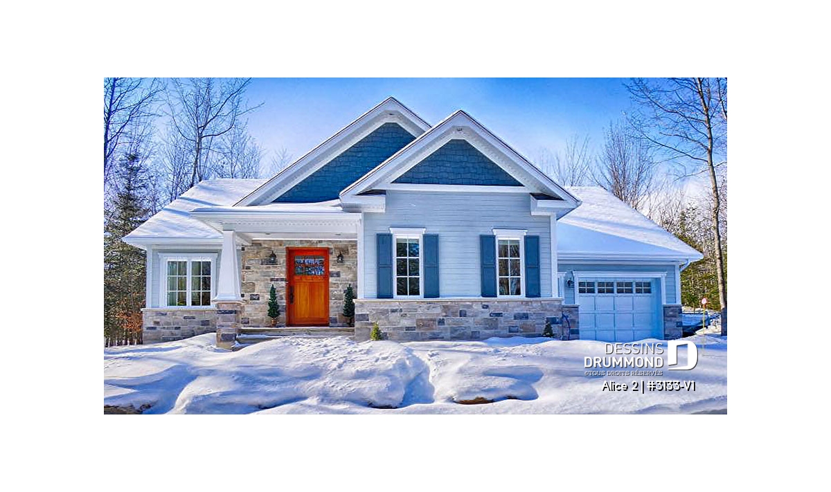 Conçu à partir du très populaire plan 3133, ce modèle version s’adresse plus particulièrement à une clientèle avisée ou plus âgée dont le besoin de vivre sur un même plancher prend le dessus sur le nombre de chambres voire même sur le coût de construction.