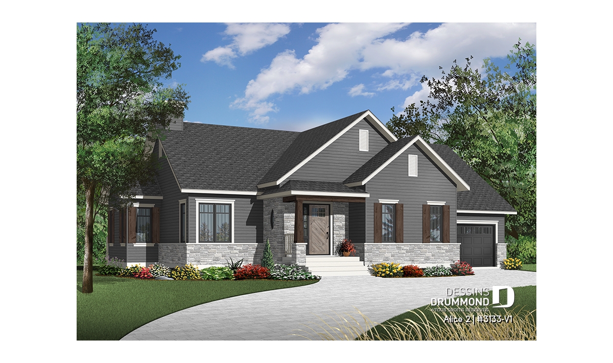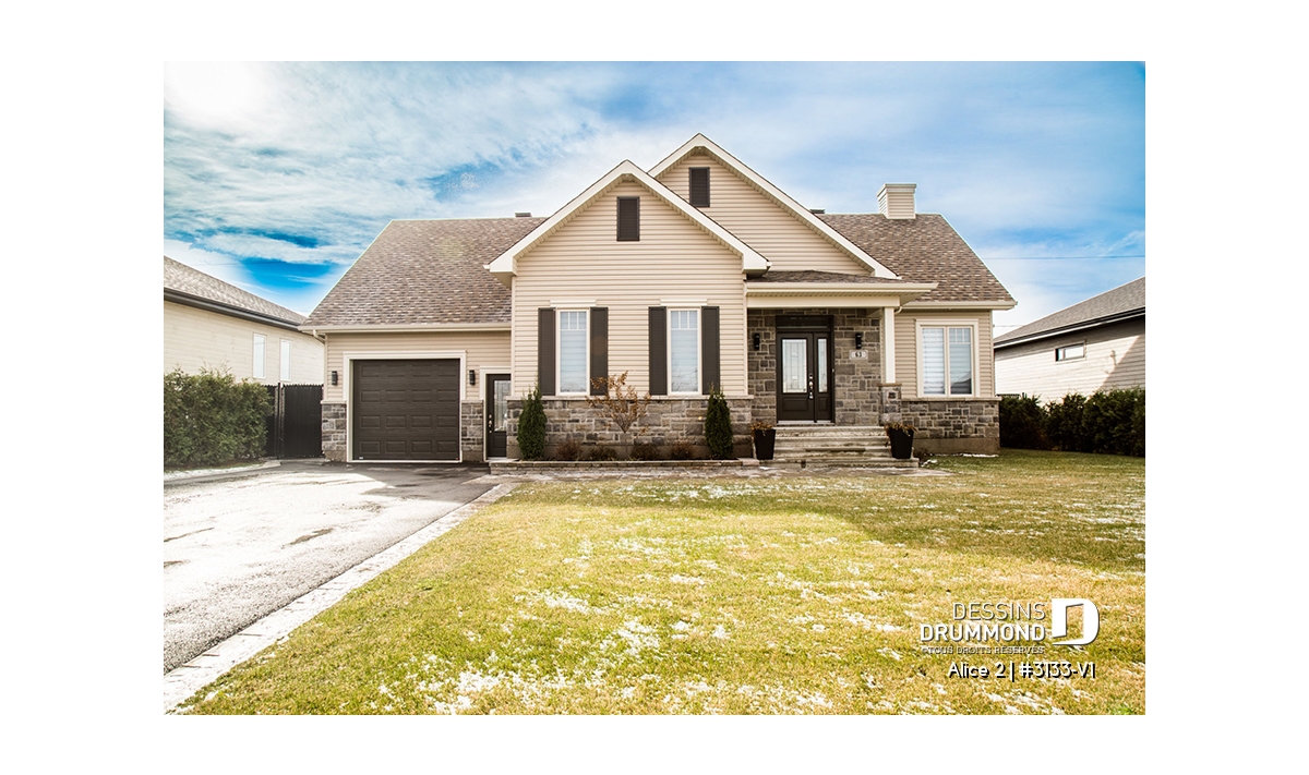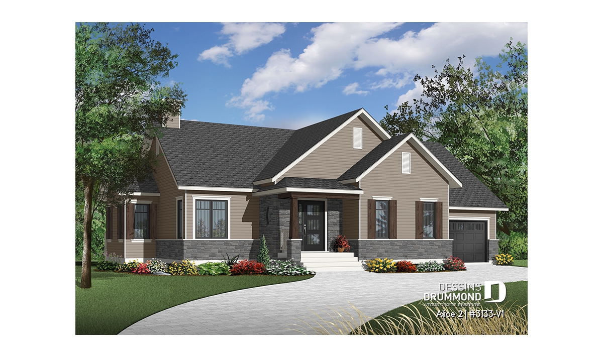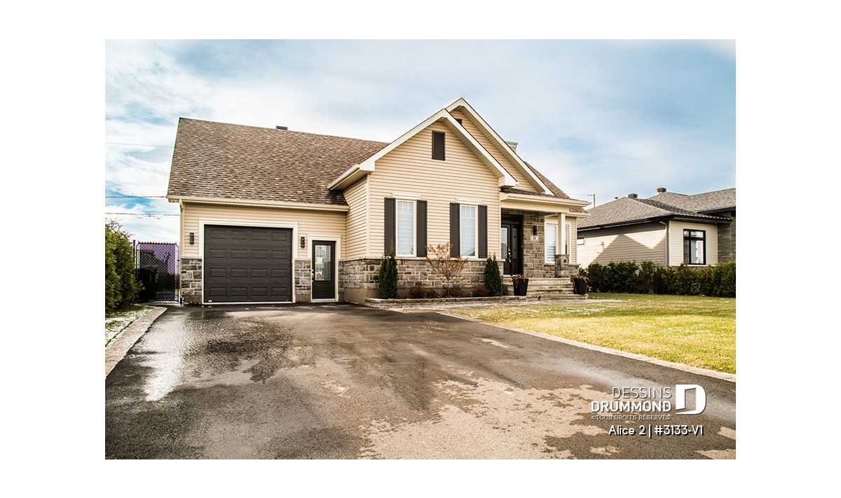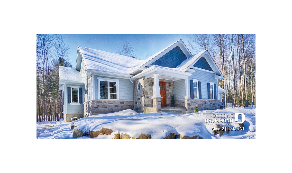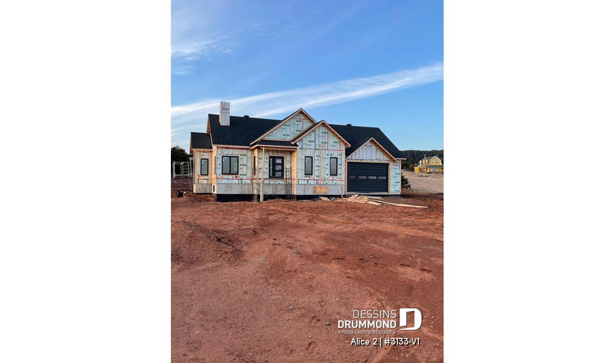 Conçu à partir du très populaire plan 3133, ce modèle version s’adresse plus particulièrement à une clientèle avisée ou plus âgée dont le besoin de vivre sur un même plancher prend le dessus sur le nombre de chambres voire même sur le coût de construction.