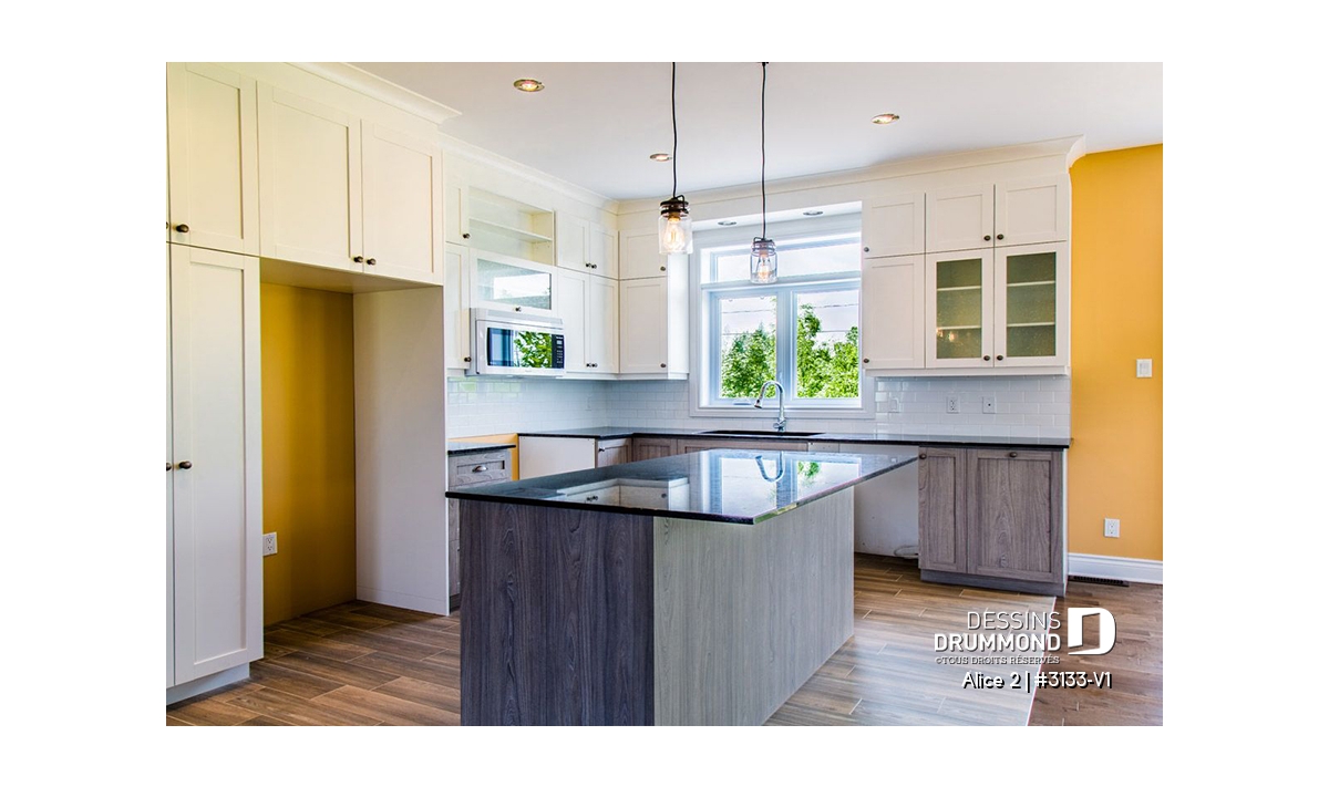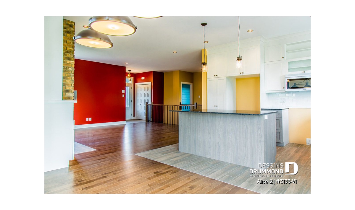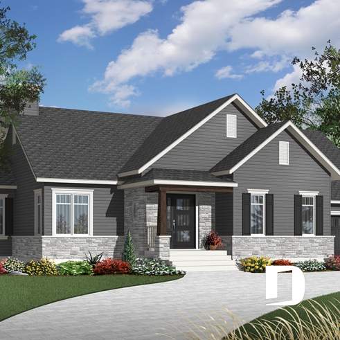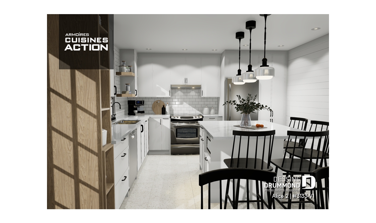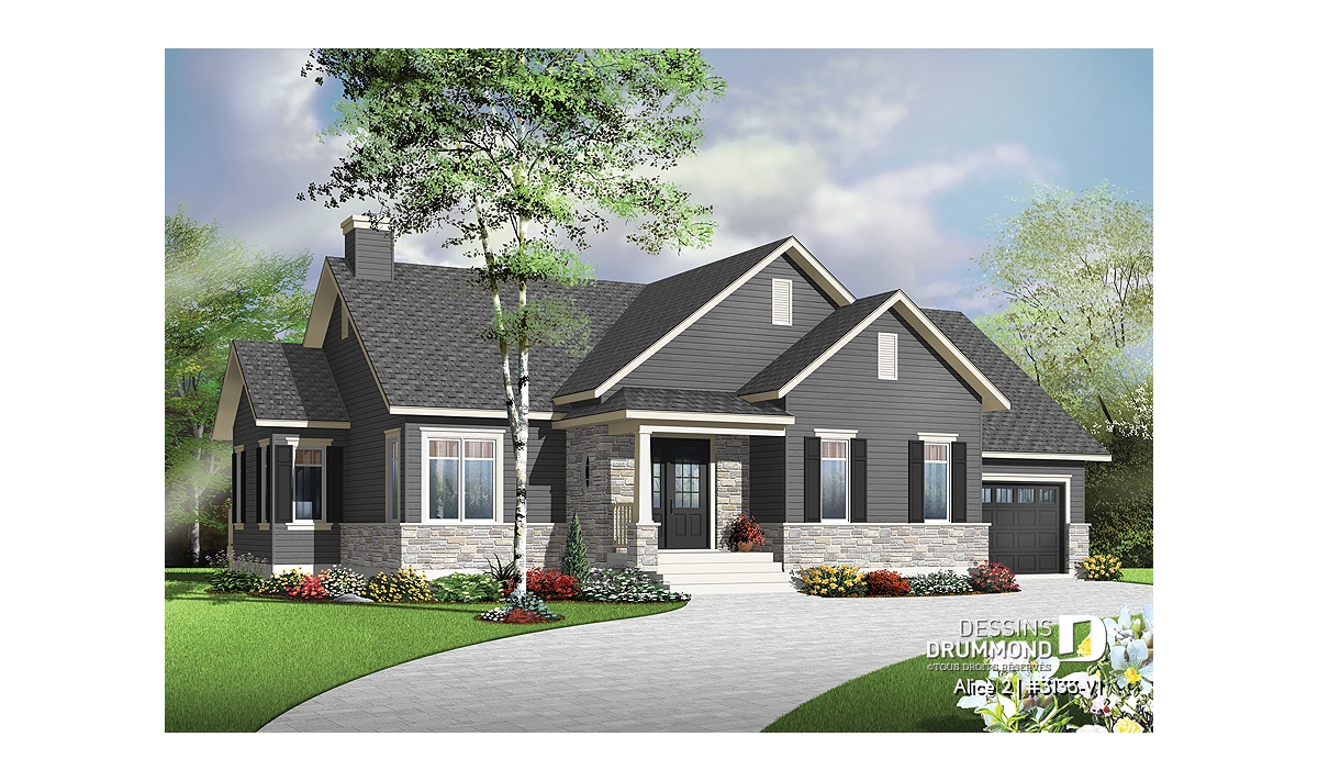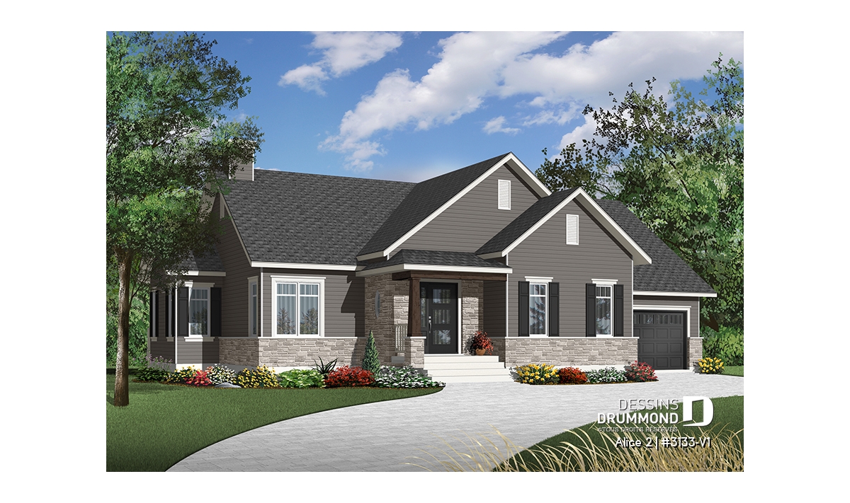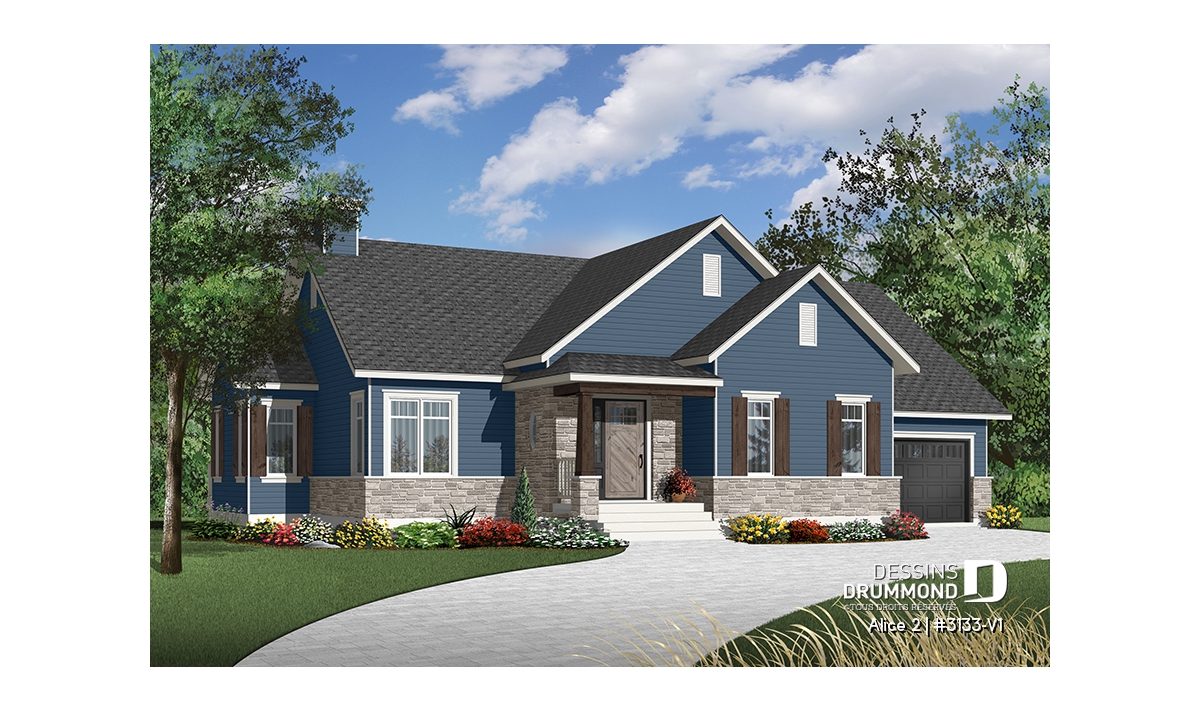 Conçu à partir du très populaire plan 3133, ce modèle version s’adresse plus particulièrement à une clientèle avisée ou plus âgée dont le besoin de vivre sur un même plancher prend le dessus sur le nombre de chambres voire même sur le coût de construction.