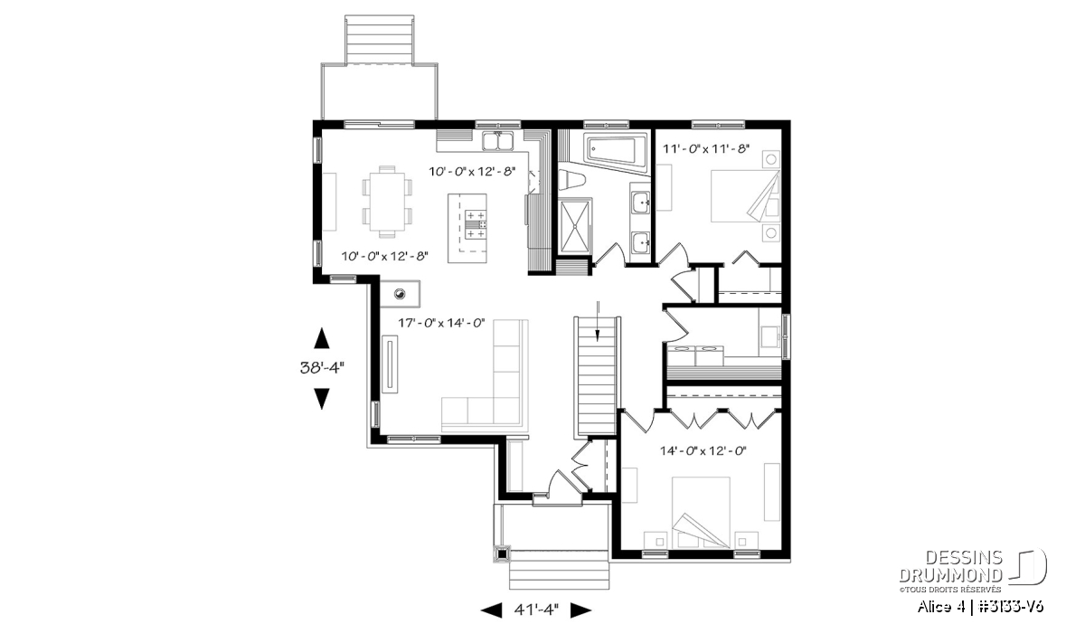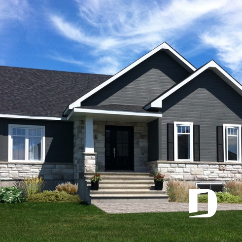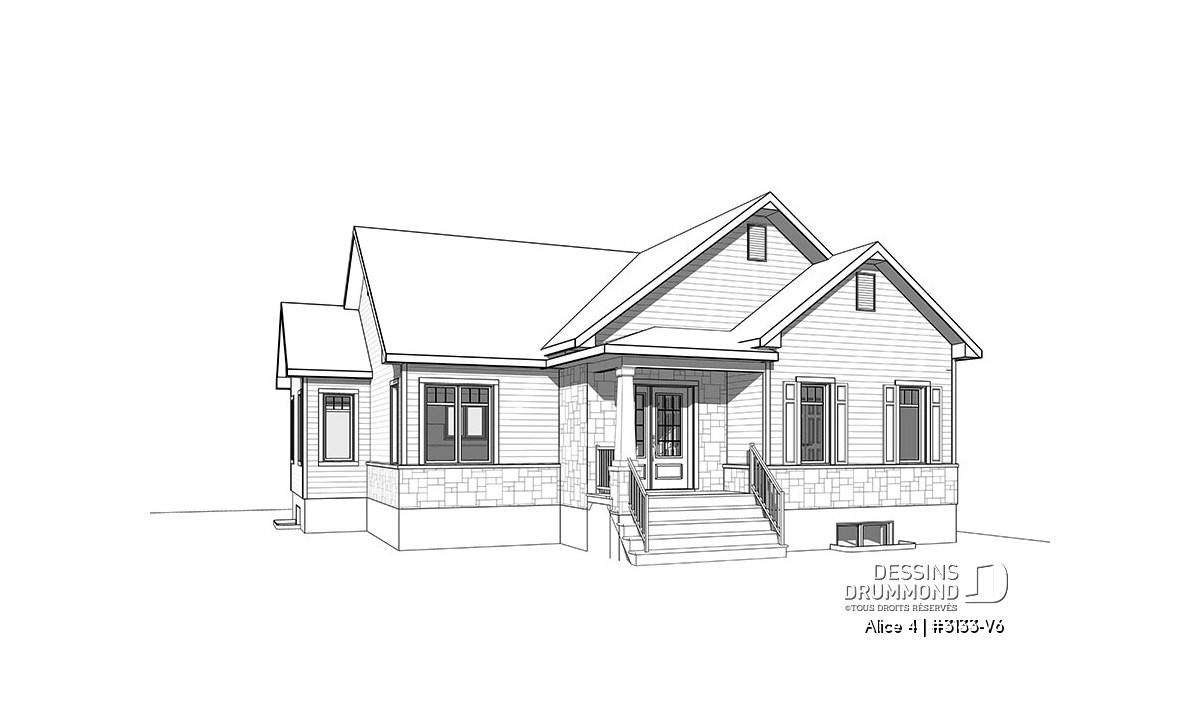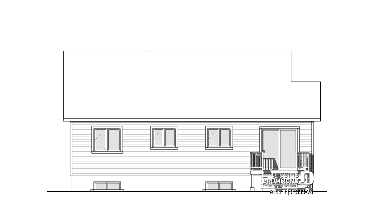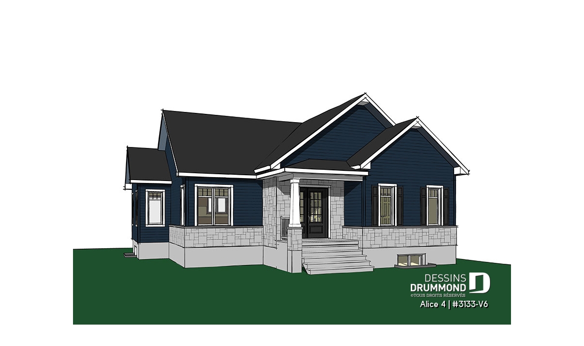 Conçu à partir du plan 3133, ce modèle version s’adresse plus particulièrement à une clientèle avisée ou plus âgée dont le besoin de vivre sur un même plancher prend le dessus sur le nombre de chambres voire même sur le coût de construction. Voilà pourquoi, à l’intérieur, les trois chambres prévues au plan d’origine font place à un aménagement de deux chambres alors que la troisième chambre est ici convertie en véritable buanderie ou salle utilitaire dans laquelle un large comptoir avec cuve intégrée et un espace congélateur seront grandement appréciés.