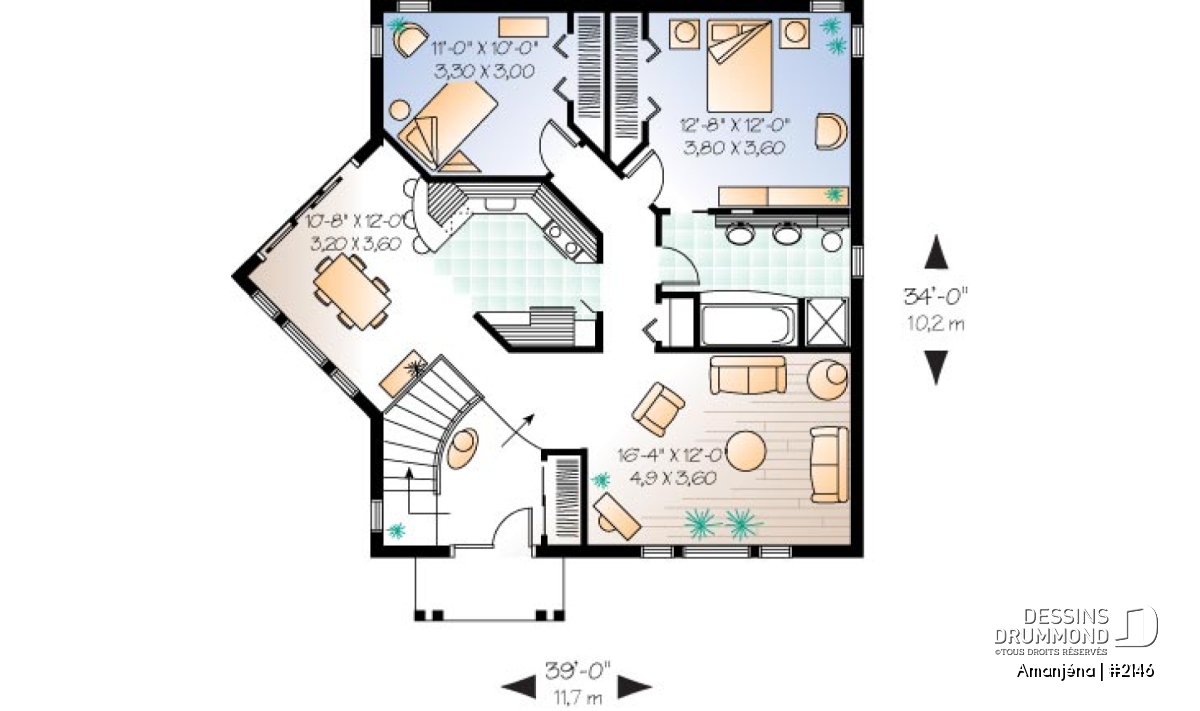 | Largeur | 39'0" | Profondeur | 34'0" |