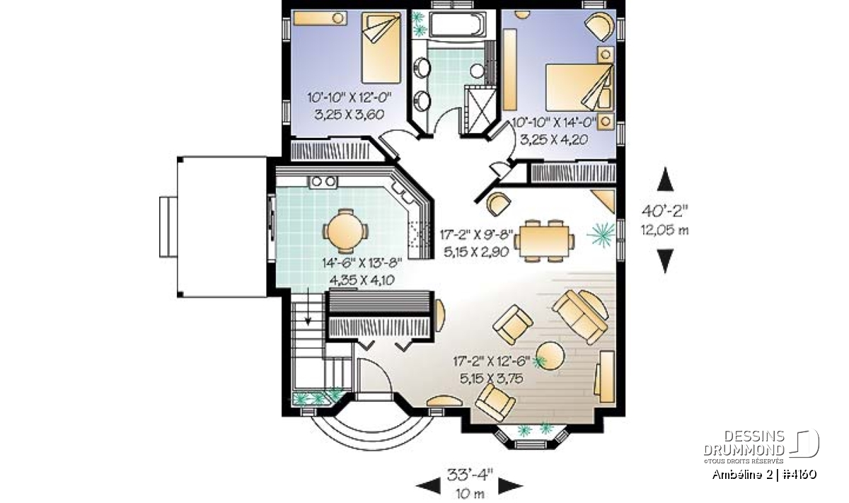 | Largeur | 33'4" | Profondeur | 40'2" |