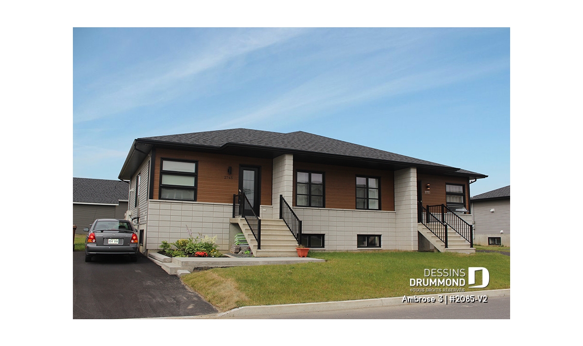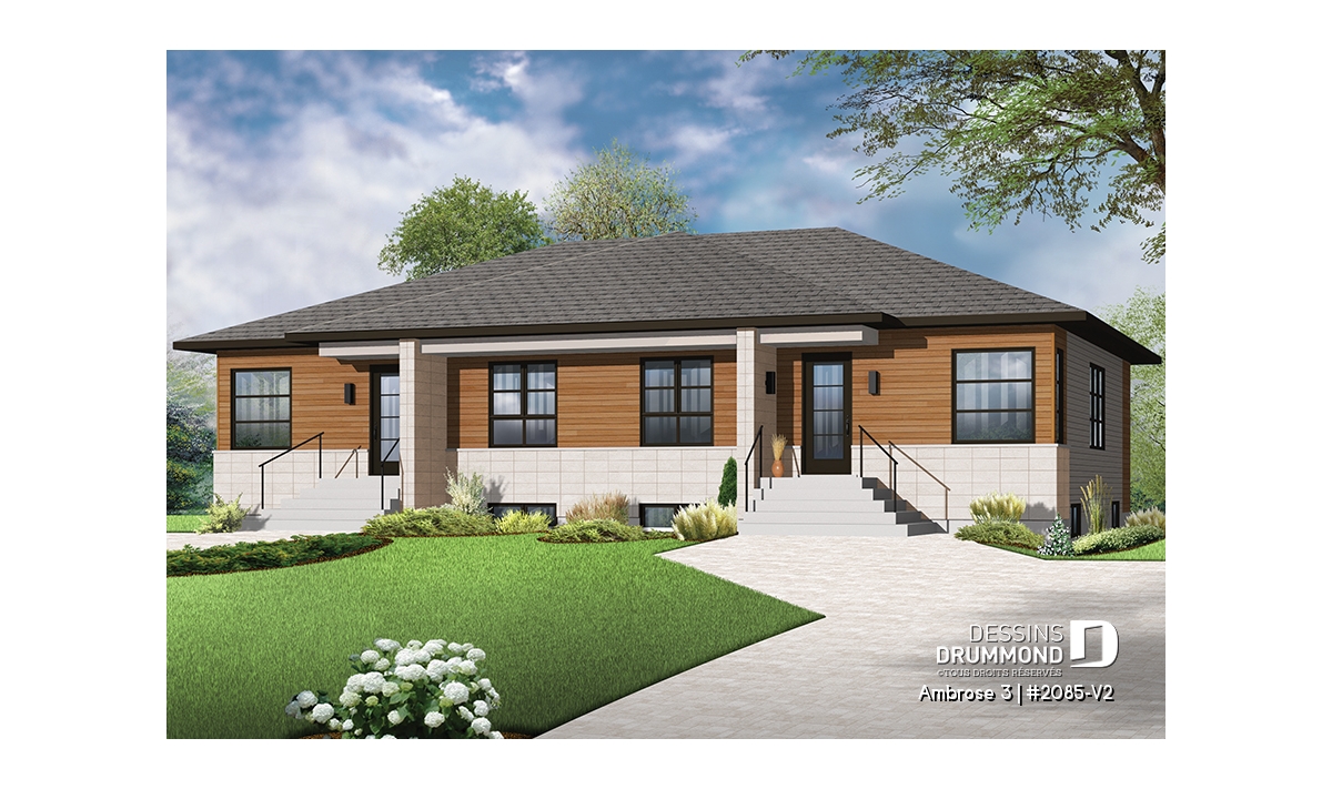 Avec la popularité sans cesse grandissante de ce type de construction, Dessins Drummond vous suggère ici un modèle jumelé de style contemporain à la fois distinctif et plutôt simple à ériger afin d’offrir ce logis à un prix de vente fort attrayant pour la clientèle intéressée.