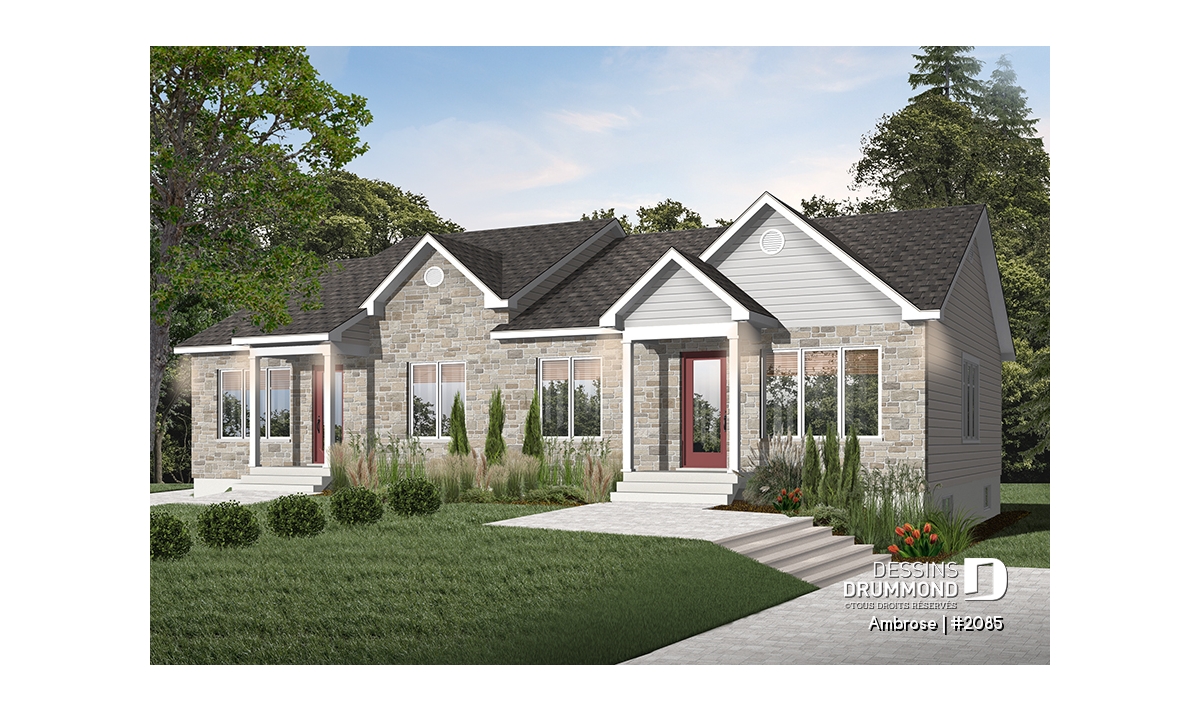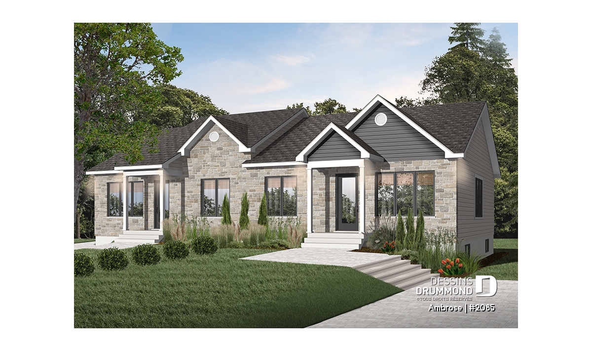 Vue avant - MODÈLE DE BASE - Plan de semi-détaché, 2 chambres, cuisine tout en lumière et grand sous-sol - Ambrose