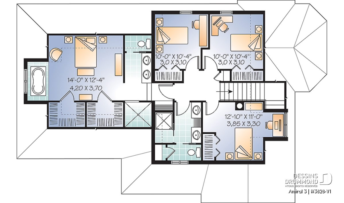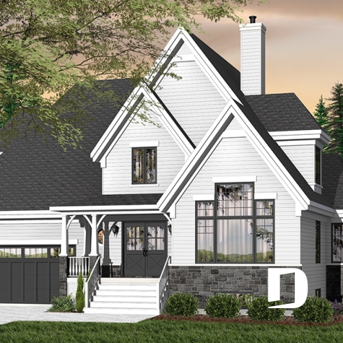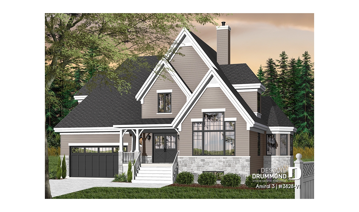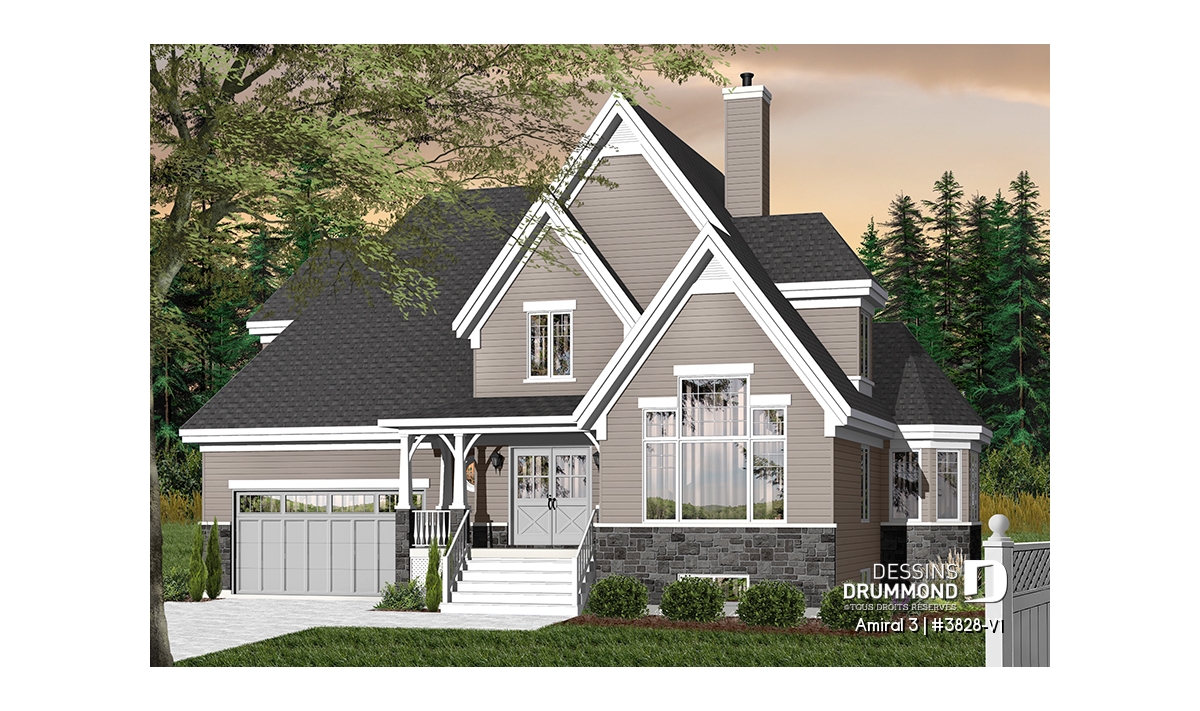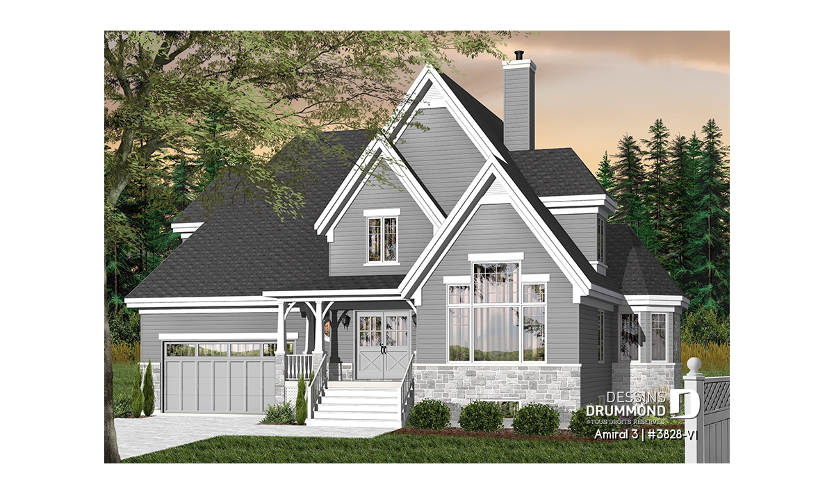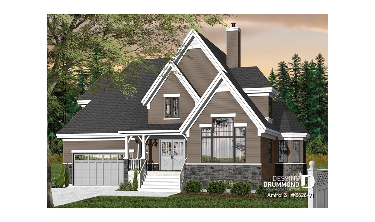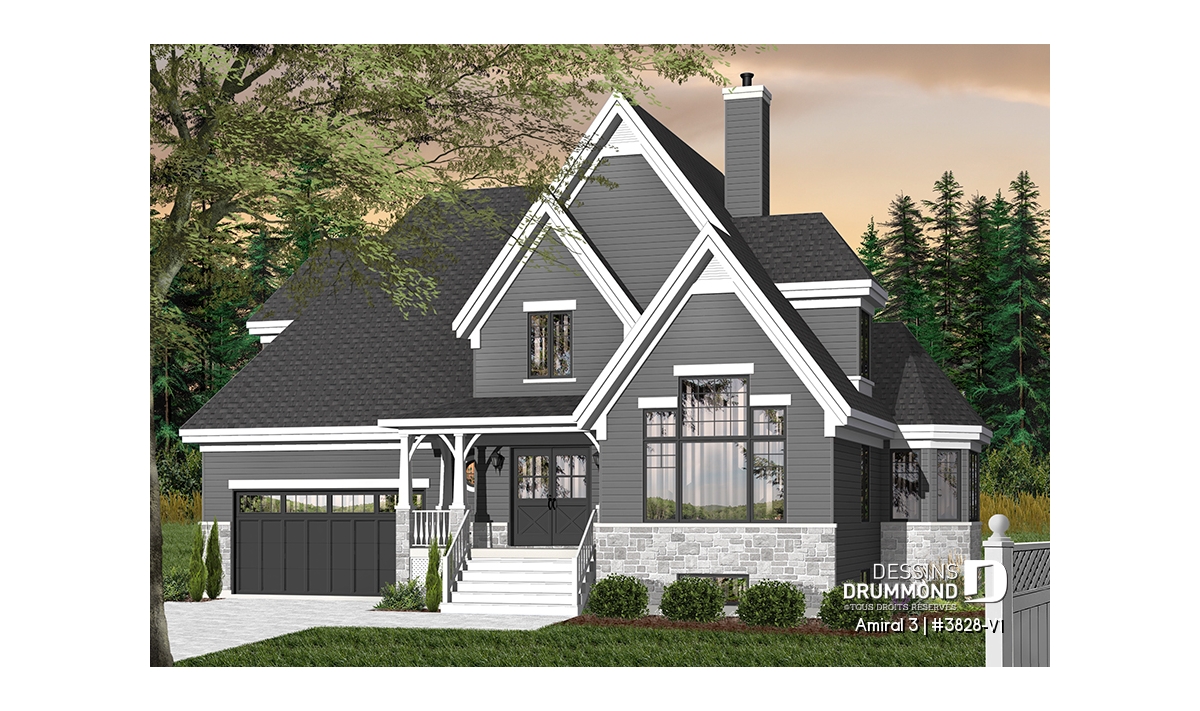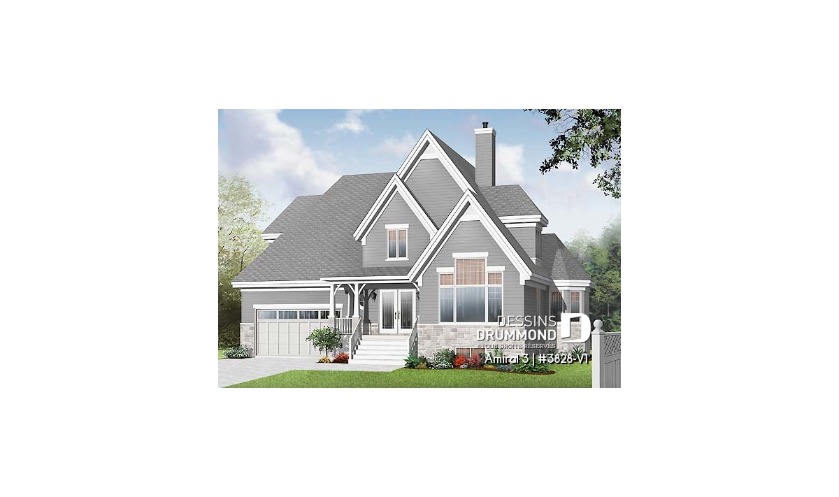 Conçu initialement dans une pensée européenne, surtout en ce qui a trait à son extérieur, le modèle 3828 dont origine ce 3828-V1 a, dès son arrivée sur le marché, suscité l’intérêt de plusieurs dont certains nous ont fait part qu’il serait bien que ce plan propose un garage double et d’autres, pourquoi ne pas remplacer l’enduit acrylique par du déclin ? En bien, voilà que la maison prend des airs à l’américaine et offre maintenant, en guise de cerise sur le sundae, quatre chambres à l’étage.