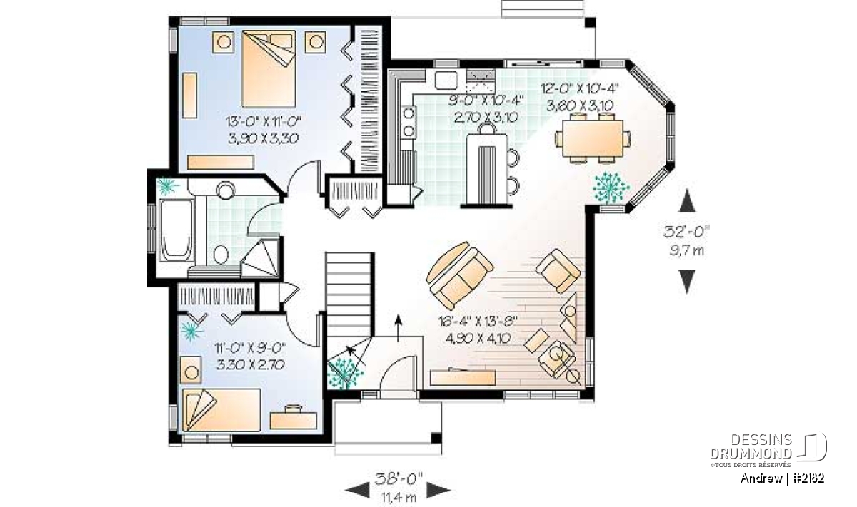 | Largeur | 38'0" | Profondeur | 32'4" |