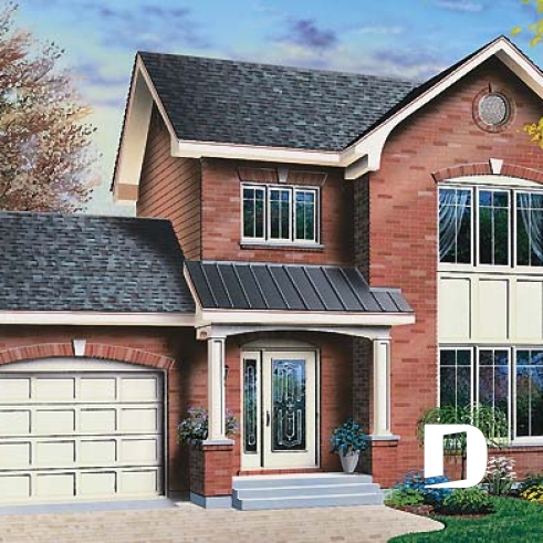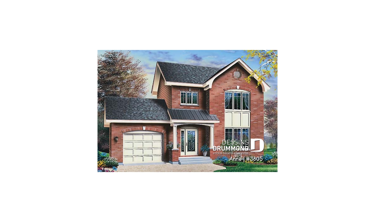 Vue avant - MODÈLE DE BASE - Maison d'inspiration anglaise, 3 chambres, buanderie au r-d-c, suite des maîtres, garage - Anne