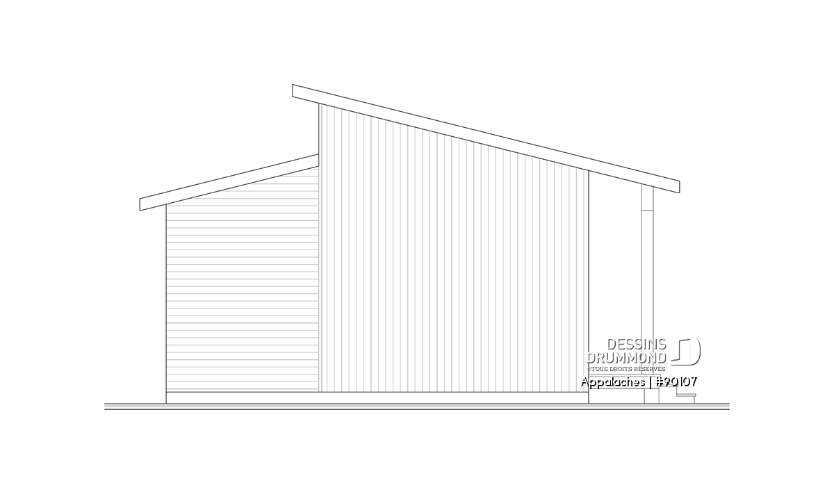 La conception de la maison APPALACHES (plan #90107) a été faite en fonction d’un terrain dont la façade est orientée au Sud. Cette magnifique petite maison convient à un mode de vie minimaliste pour une petite famille. Nous entrons donc au niveau supérieur de la maison où on retrouve l’entrée, la chambre principale, une grande salle de bain, la cuisine et la salle à manger proposant une jolie table avec chaises et banquette. Au-devant de la maison, il y a le salon qui baignera dans la lumière toute la journée grâce à sa grande fenêtre.