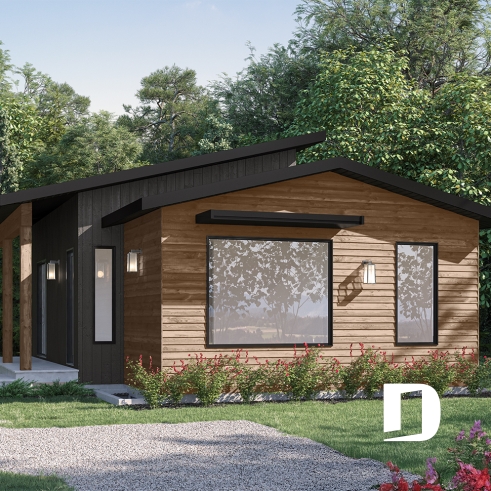 **Plan éco-responsable de petite maison genre chalet de style moderne rustique.