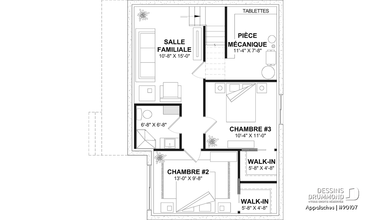 *Si vous souhaitez acheter le plan du sous-sol aménagé, veuillez sélectionner cette option dans le panier d'achat, dans la section "Sélectionner votre fondation". Si vous ne sélectionnez pas cette option, vous recevrez le sous-sol non fini, sans frais additionnel.