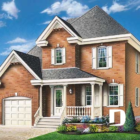 Effectivement un choix des plus judicieux que ce modèle conçu pour terrain étroit, offrant un cachet fort attrayant en façade principale et une construction tout à fait dans le ton avec son garage abaissé. En plus, que dire de cette agréable galerie couverte à l’avant permettant à ses propriétaires de s’y retrouver à l’abri des intempéries tant pour l’arrivée à domicile que pour s’y asseoir en toute quiétude.