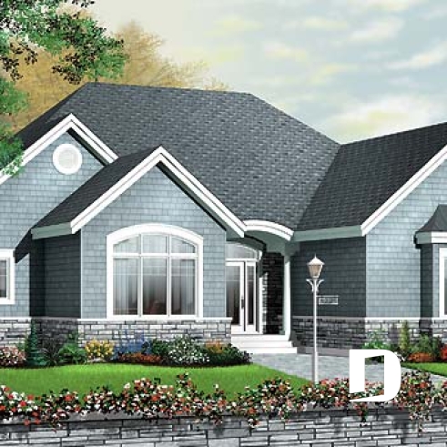 Plan de plain-pied avec garage double, plafond jusqu'à 12', cuisine avec îlot, 3 chambres, 2 salles de bain