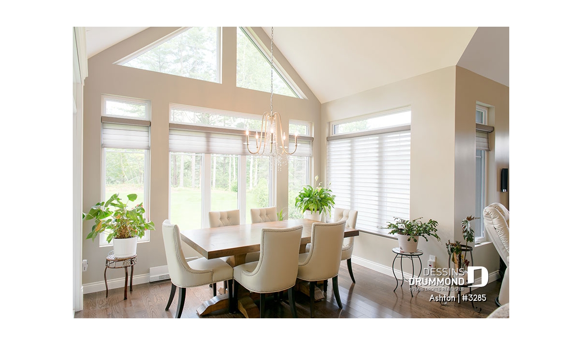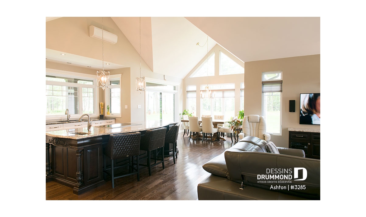 Plafond à 9' partout sauf plafond à caisson, et cathédrale partiel au secteur commun du r-d-c.
