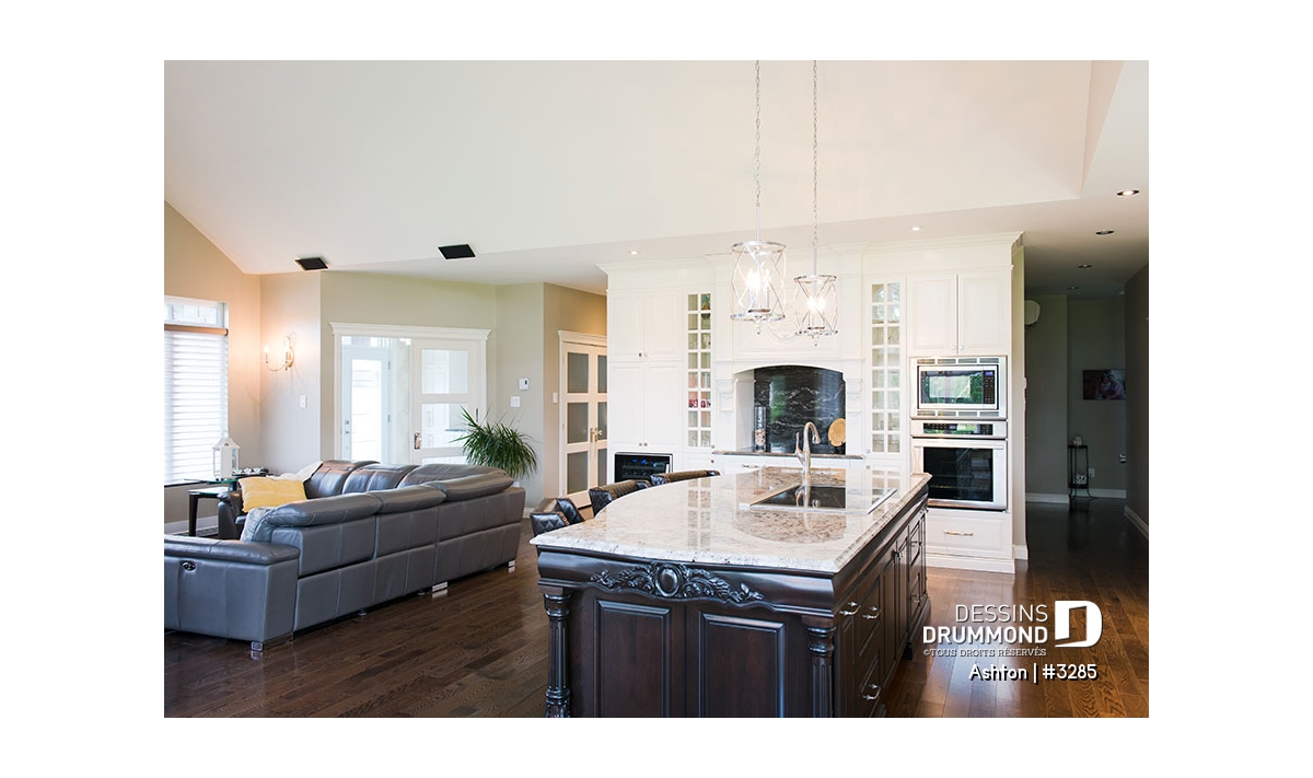 Salle de lavage au rez-de-chaussée, Foyer, Ilôt, Walk-in ch. maîtres, Terrasse abritée, Plafond à plus de 8', Vue paronamique, Accès au sous-sol du garage, Suite d'invités, Bain et douche séparés, Lavabo double, Vestibule, Suite des maîtres au rdc
