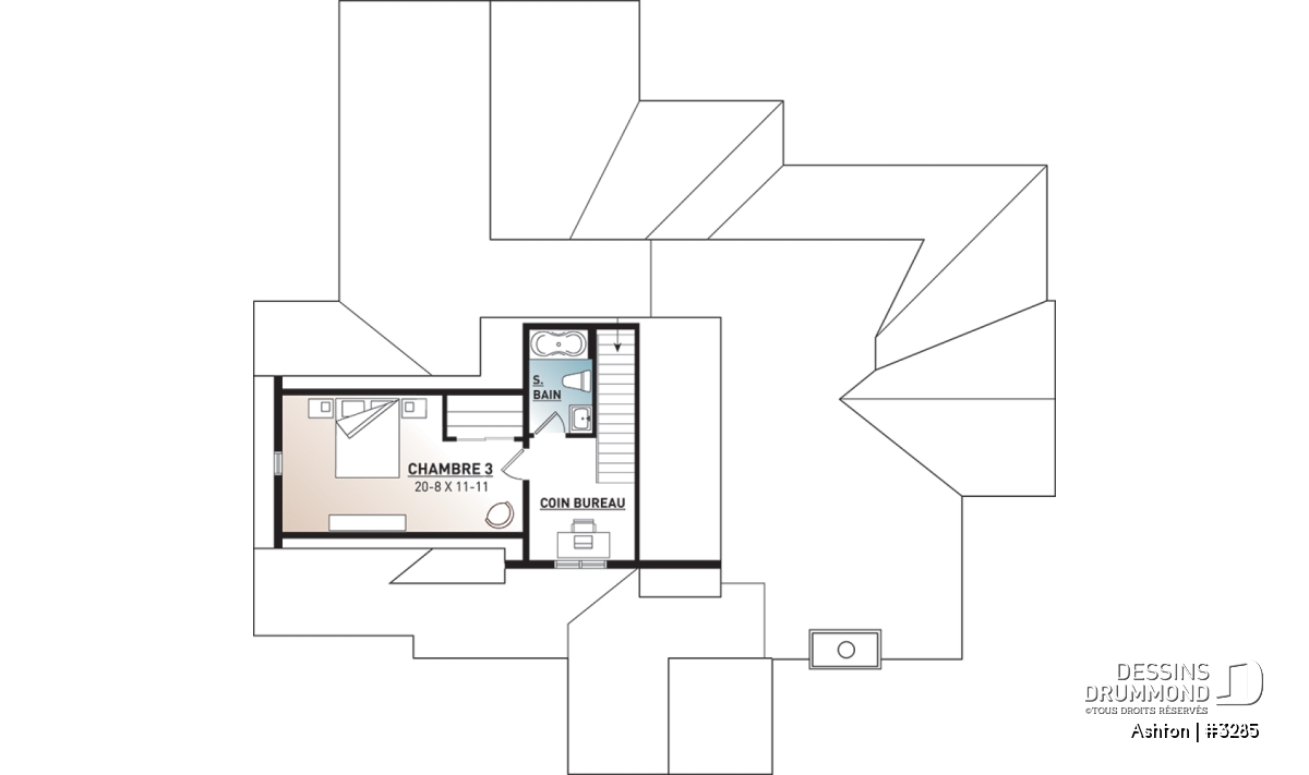 La suite pour invités à l’étage est adjacente à une salle de bain complète et à un coin ordinateur ou coin lecture. Cette suite pourra facilement être convertie en chambre #3.
