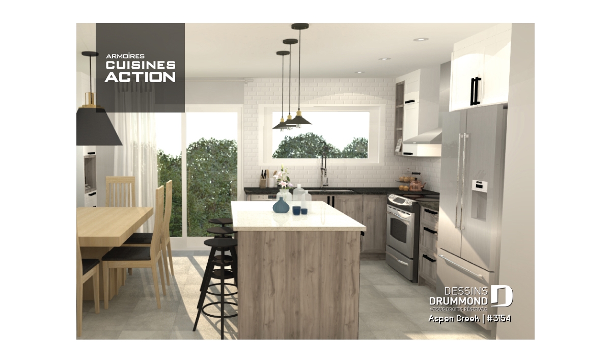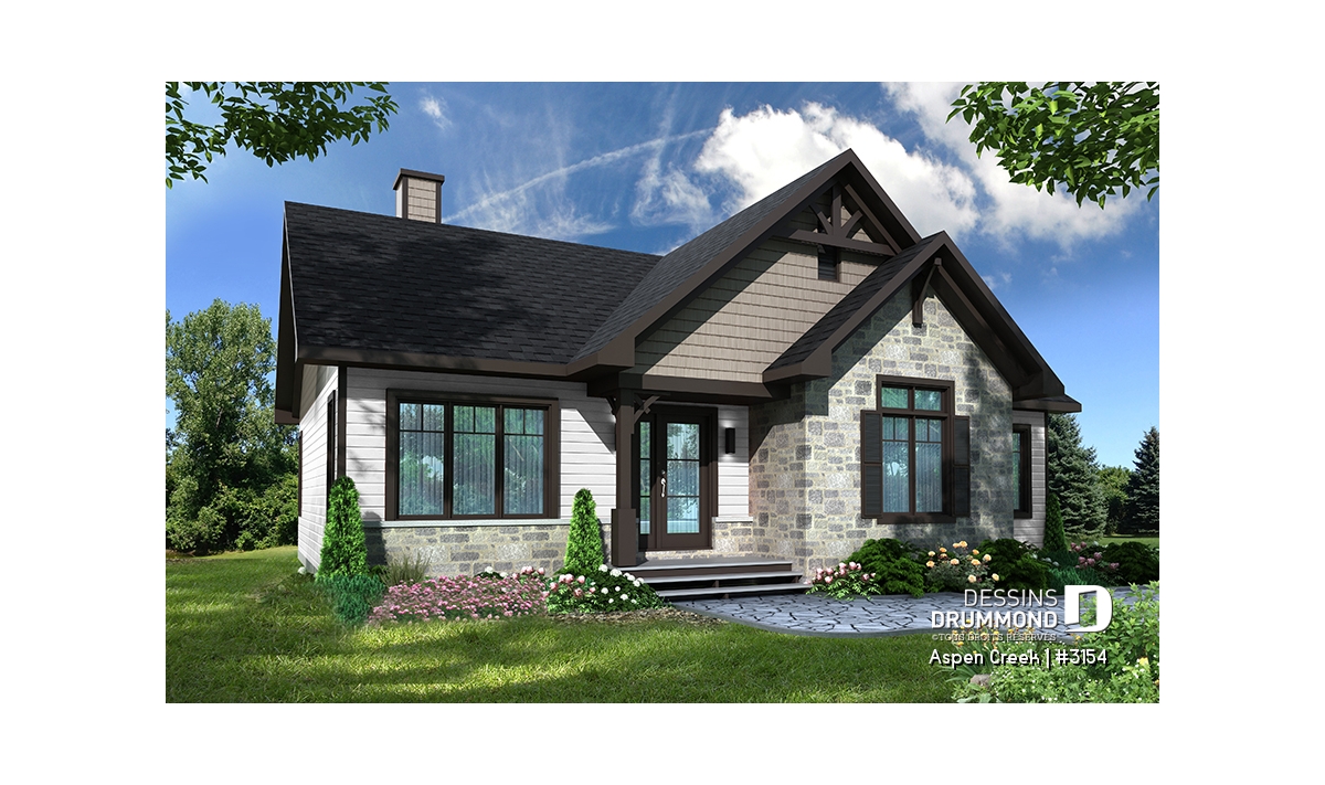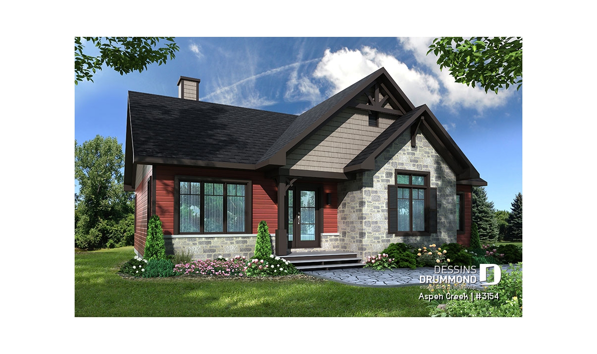 Nouveau modèle de maison de style transitionnel, aux charmes et aux allures à la fois rustique et champêtre, mais comportant aussi des éléments empruntés au style maison contemporaine tels les fenêtres aux moulures foncées par exemple. Ce nouveau plan de maison moderne rustique de Dessins Drummond, nommé Aspen Creek, ou plan # 3154, a été conçu par l’agence Dessins Drummond de la Beauce. Il y a beaucoup de talents dans le réseau des 22 agences Dessins Drummond au Québec!