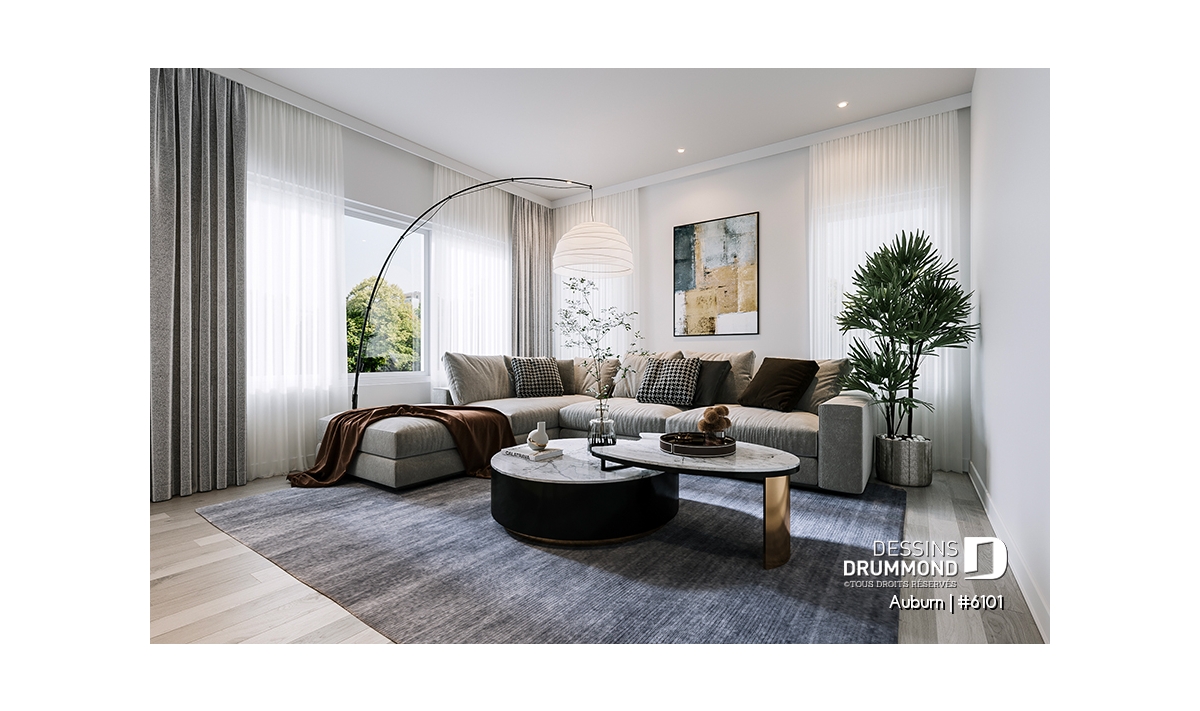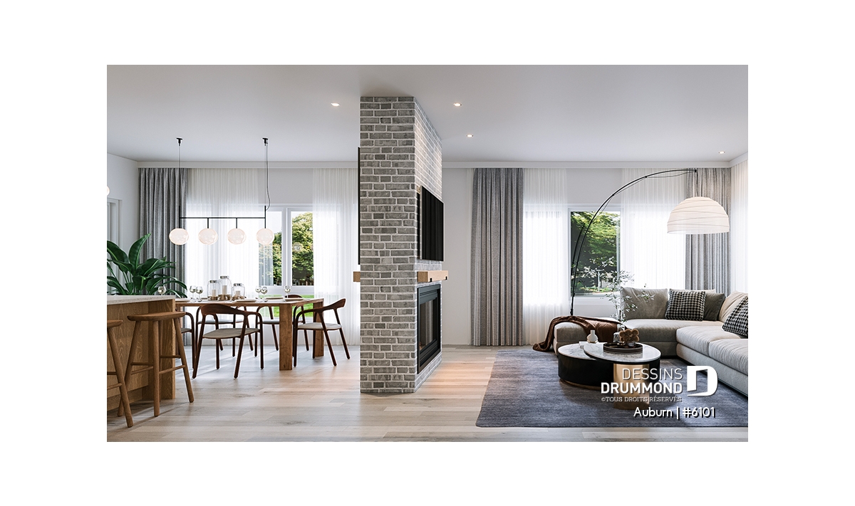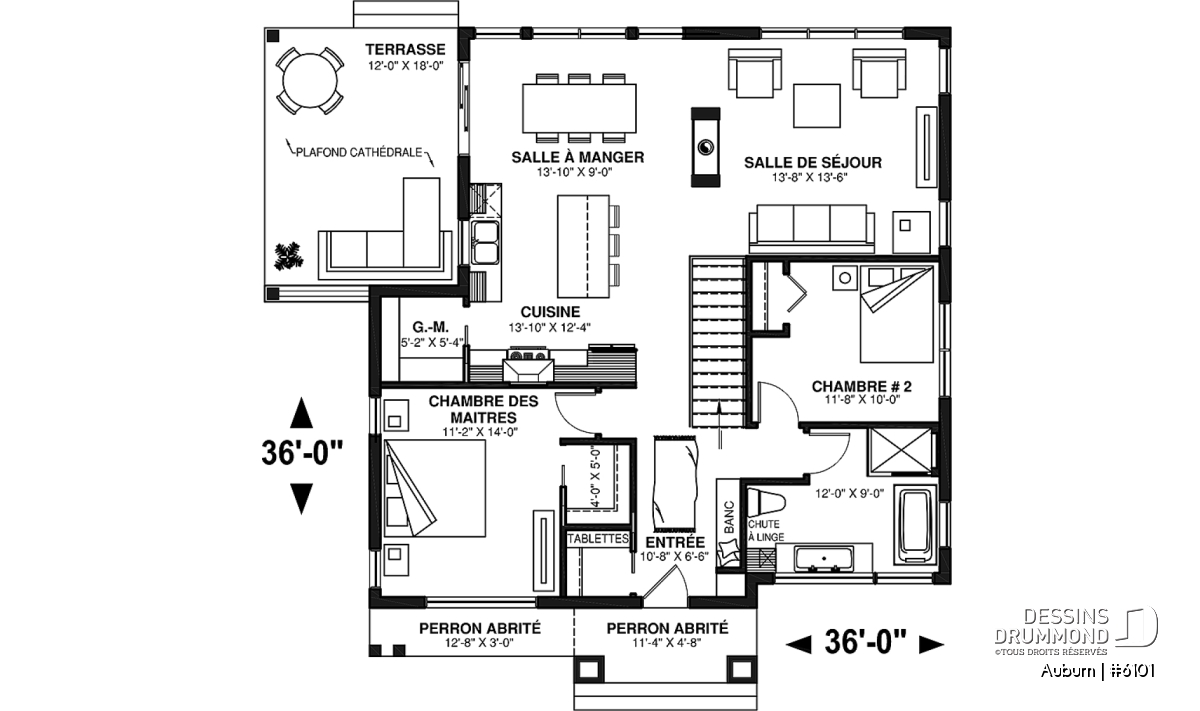Le plan de maison AUBURN (#6101) propose une tonne de surprise dans ses 1 190 pieds carrés. Avec 3 chambres et deux salles de bain, cette maison peut accueillir une grande famille ou une famille reconstituée aisément.