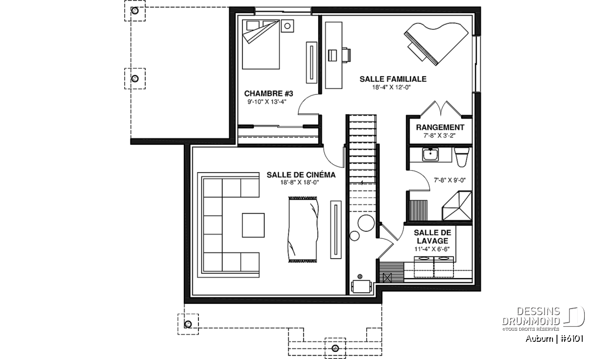Au sous-sol, une salle familiale de bonne dimension, avec une garde-robe pour du rangement, permet plusieurs fonctions. De plus, pour une expérience maximale avec toute la famille, la salle de cinéma de 18x18 en épatera plusieurs! On y retrouve également la troisième chambre et la deuxième salle de bain, comprenant les électroménagers de buanderie avec la chute à linge et un grand comptoir pratique ainsi qu’une douche en coin.