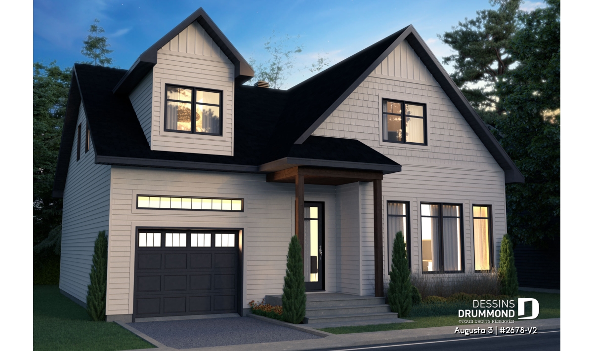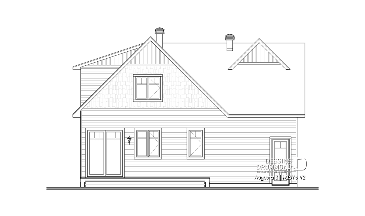 Le plan de maison AUGUSTA 3 (plan #2678-V2) est une version agrandie du plan Augusta 2 (2678-V1). Ce plan de maison de style champêtre rappelle le style chaleureux et simple à la fois des maisons retrouvées dans le Maine.
