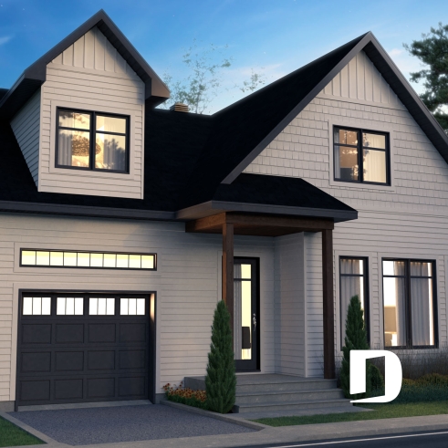Avec un plancher de deux étages, proposant 3 chambres et garage, ce plan est idéal pour les familles possédant un terrain étroit et à la recherche de ces deux commodités.