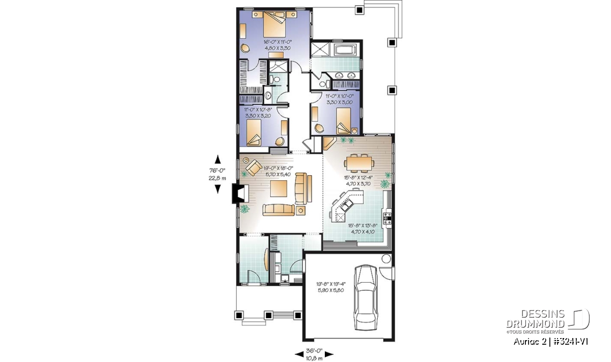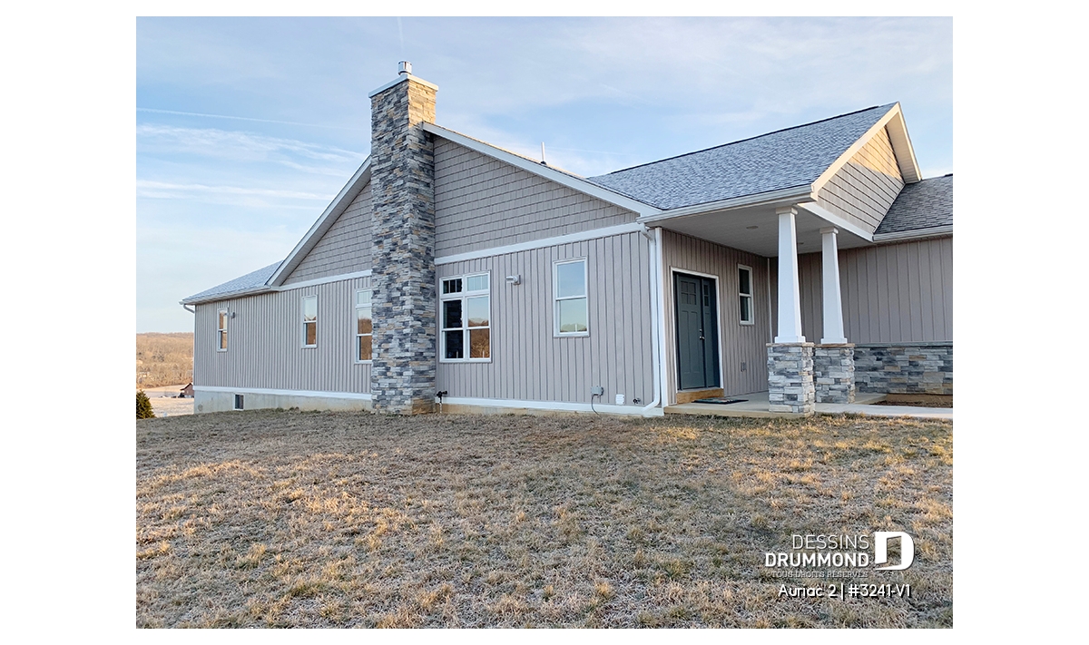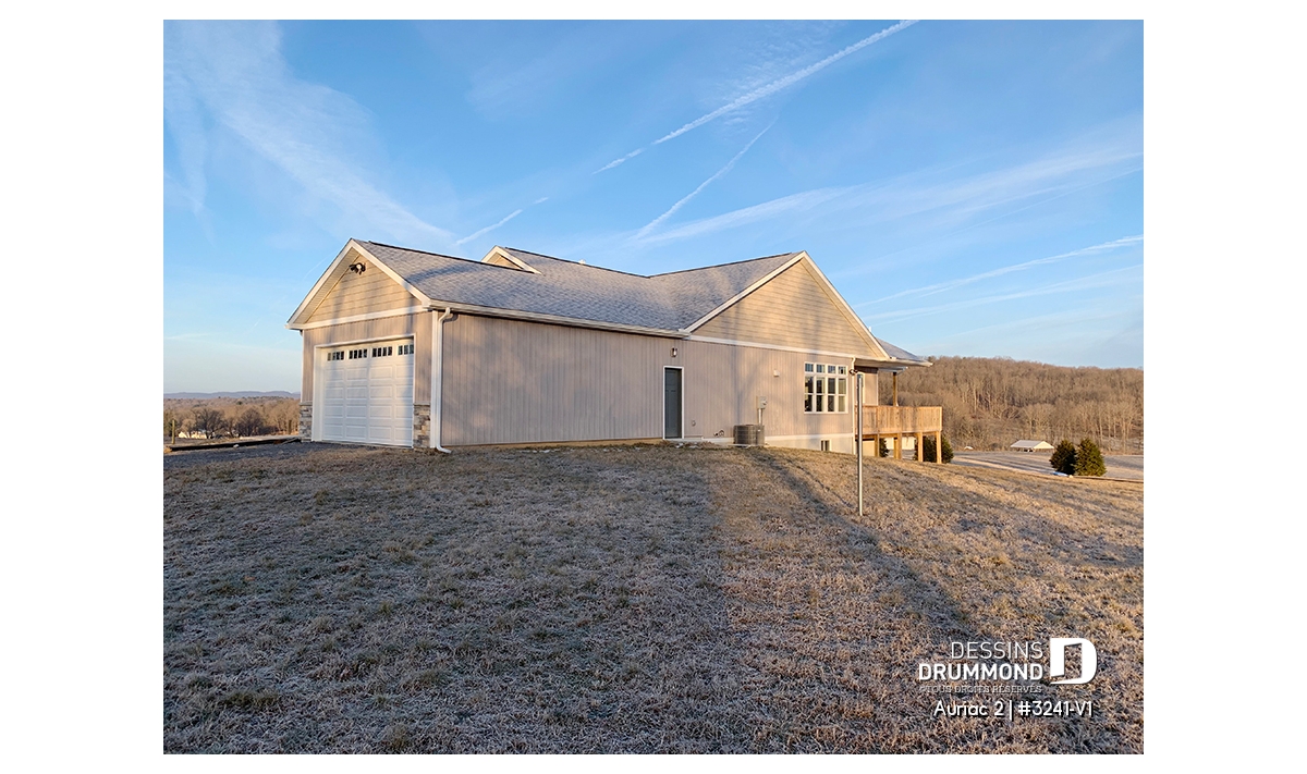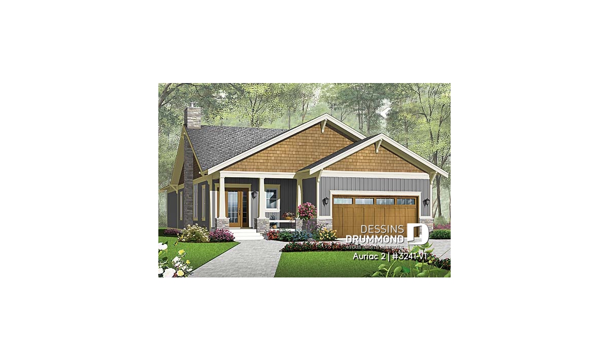 Plain-pied de style nordique proposant 3 chambres, 2 salles de bain, une salle de lavage et garage double.