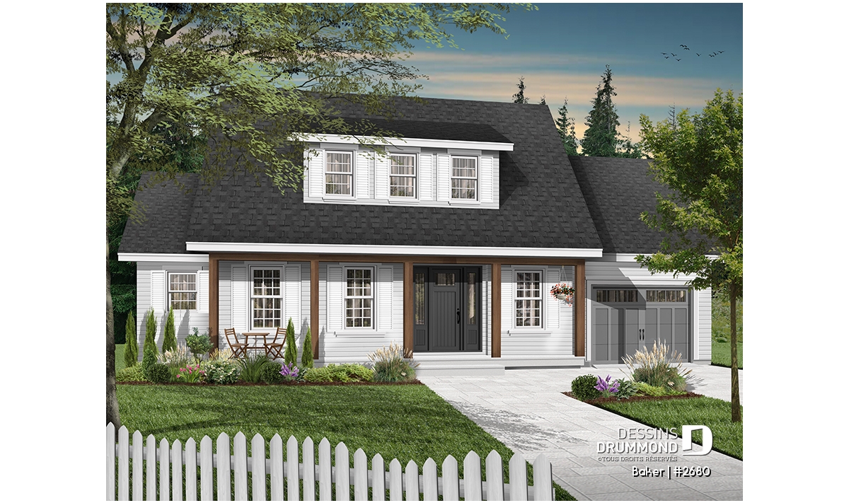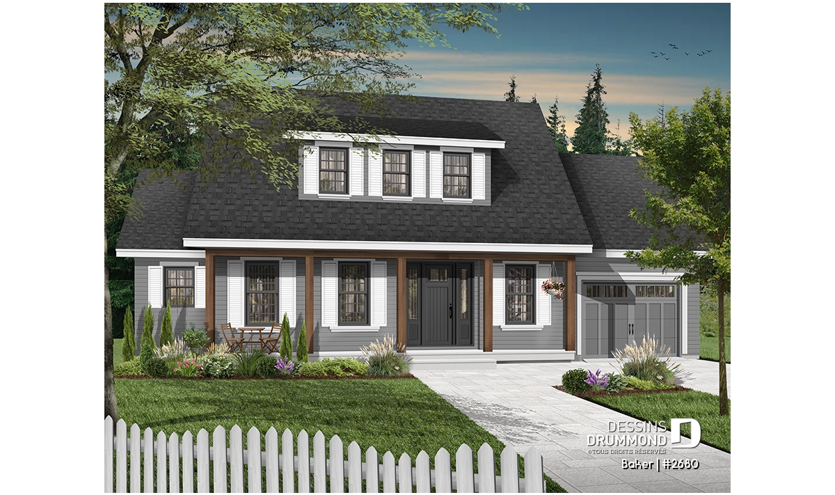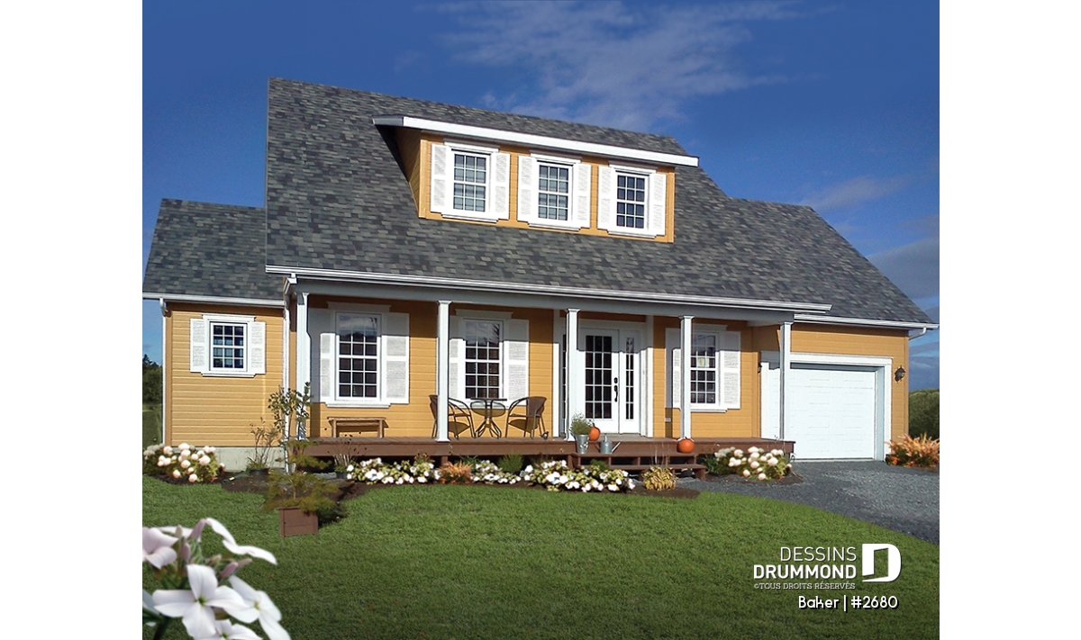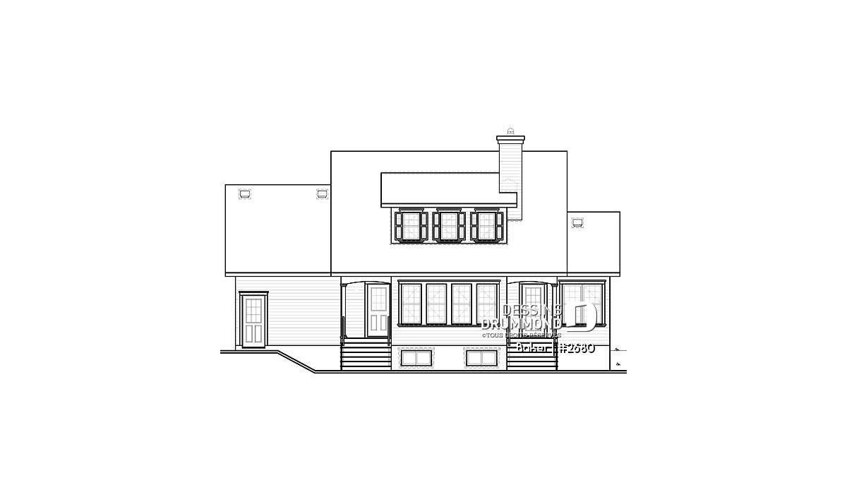 Lignes simples, lucarnes en chien sis (pour chien assis), entrées couvertes et fenestration généreuse caractérisent tant la façade principale que la façade arrière suggérant par le fait même une lumière abondante toute la journée durant.