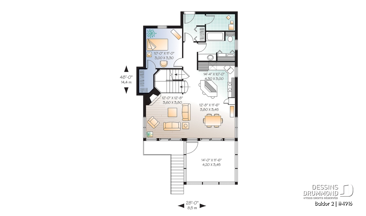 | Largeur | 28'0" | Profondeur | 36'0" |