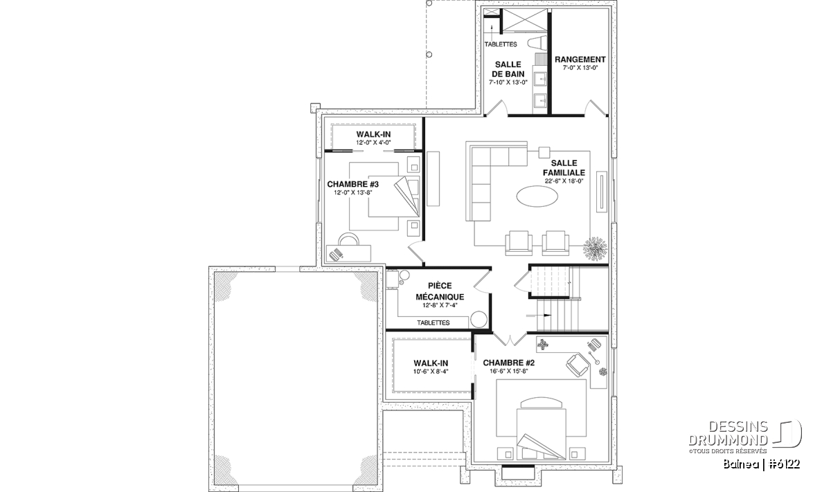 Le sous-sol aménagé accueille deux chambres avec garde-robe walk-in et une salle familiale idéale pour les loisirs et la détente. Un espace de rangement et une salle mécanique y sont intégrés pour plus de praticité. Enfin, le garage simple de grand format, avec une hauteur de 11'10", offre un espace parfait pour le rangement ou l’installation d’un atelier.