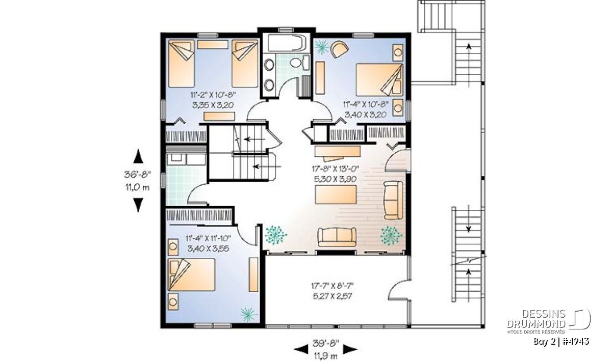 Largeur 39'8" Profondeur 36'8"