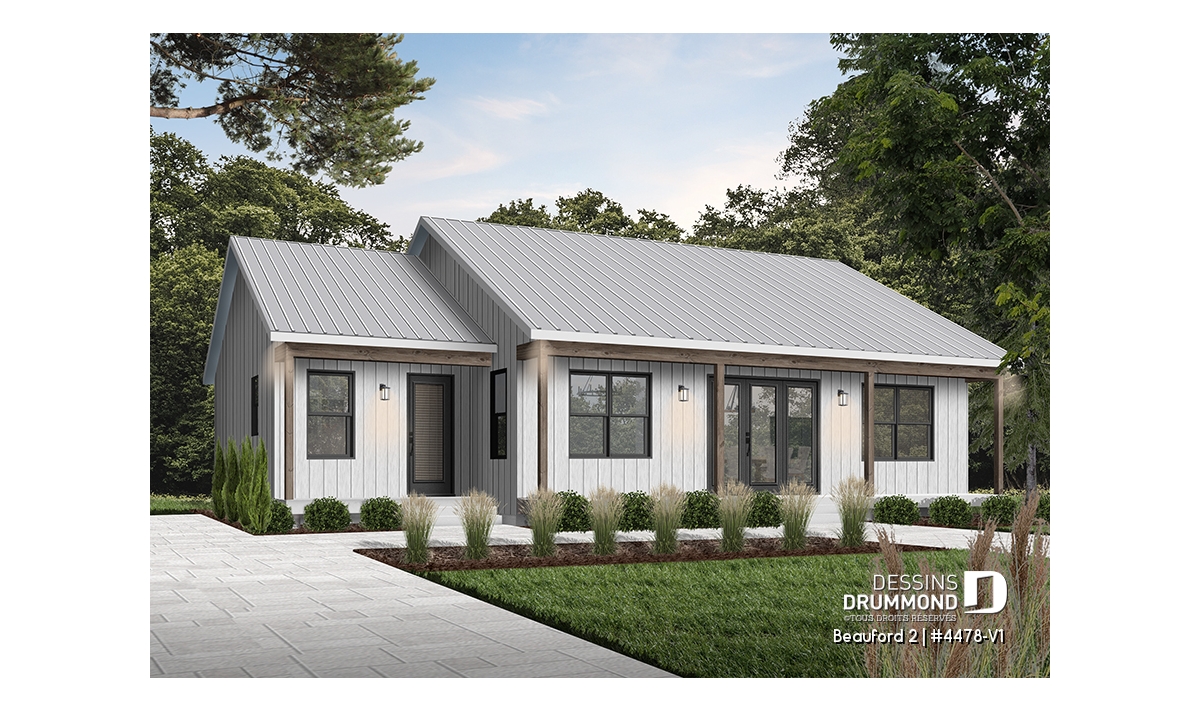 Ce splendide plan de maison de plain-pied, inspiré du style Farmhouse ou fermette américaine, propose une superficie habitable de 1604 pi² où confort et fonctionnalité se rencontrent harmonieusement. Son allure intemporelle, à la fois élégante et chaleureuse, saura séduire les amateurs de maisons au charme champêtre revisité dans un esprit moderne.