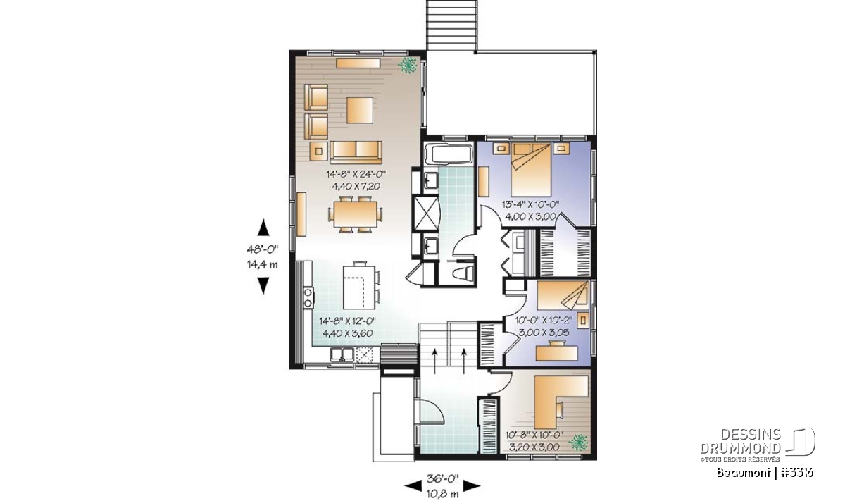 | Largeur | 36'0" | Profondeur | 48'0" |