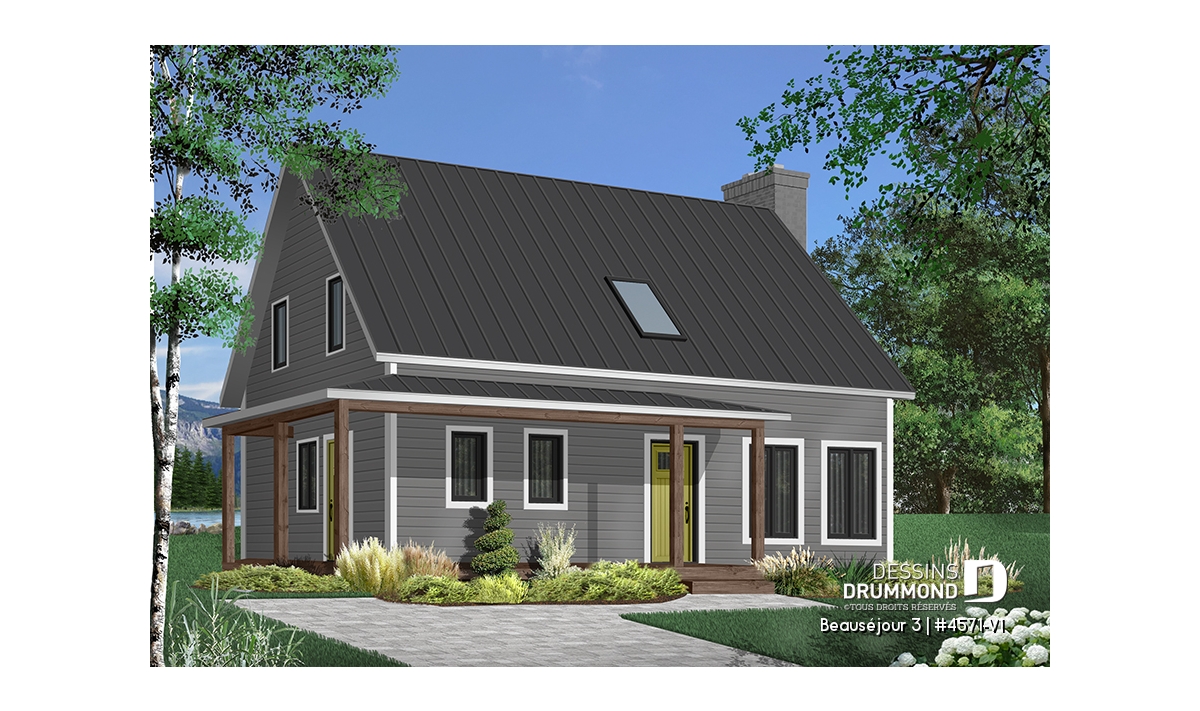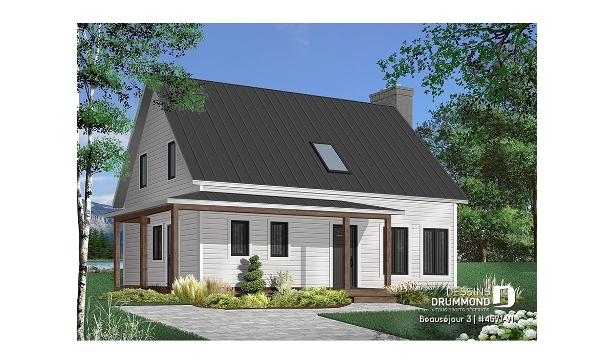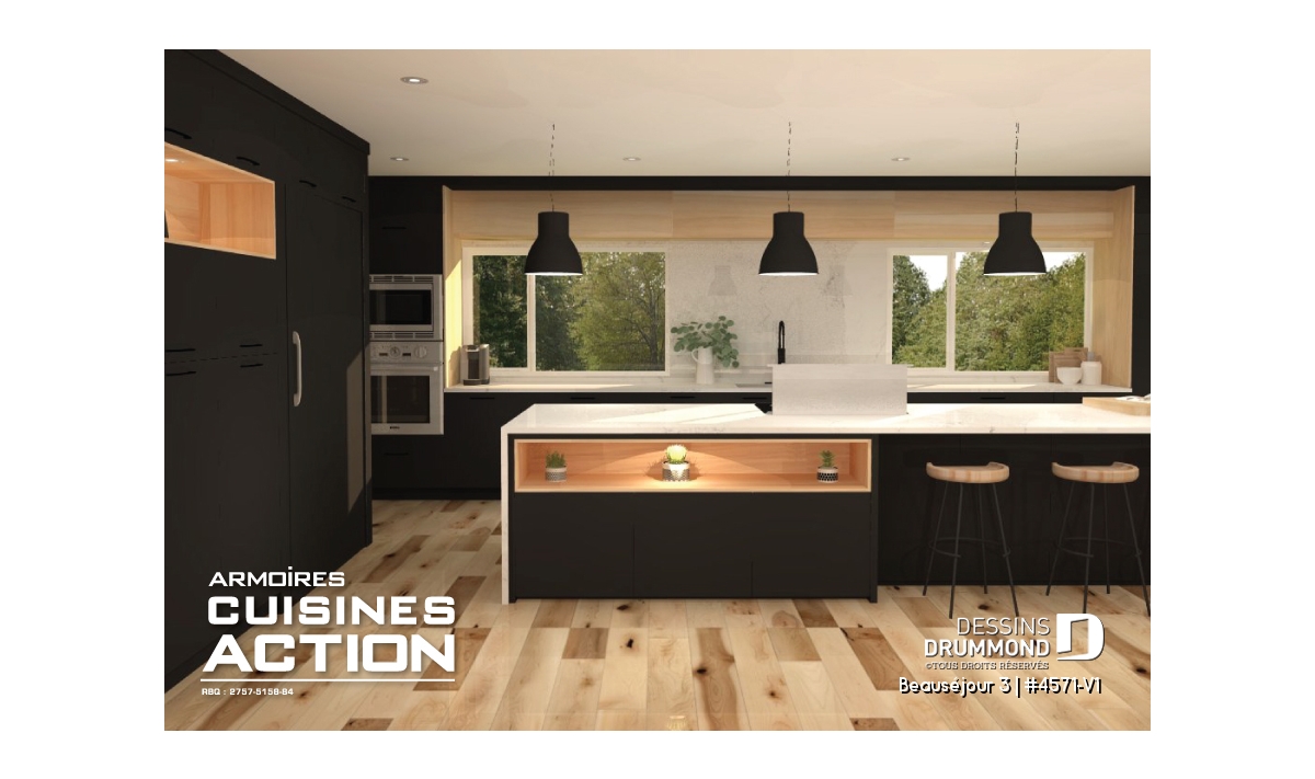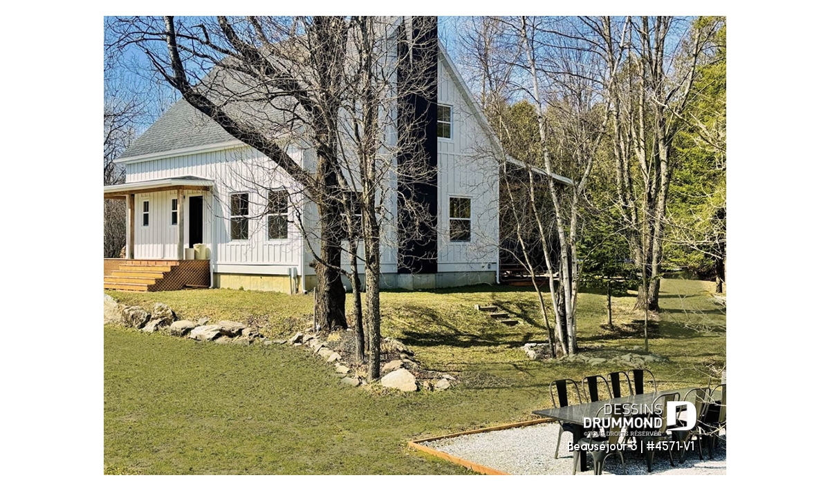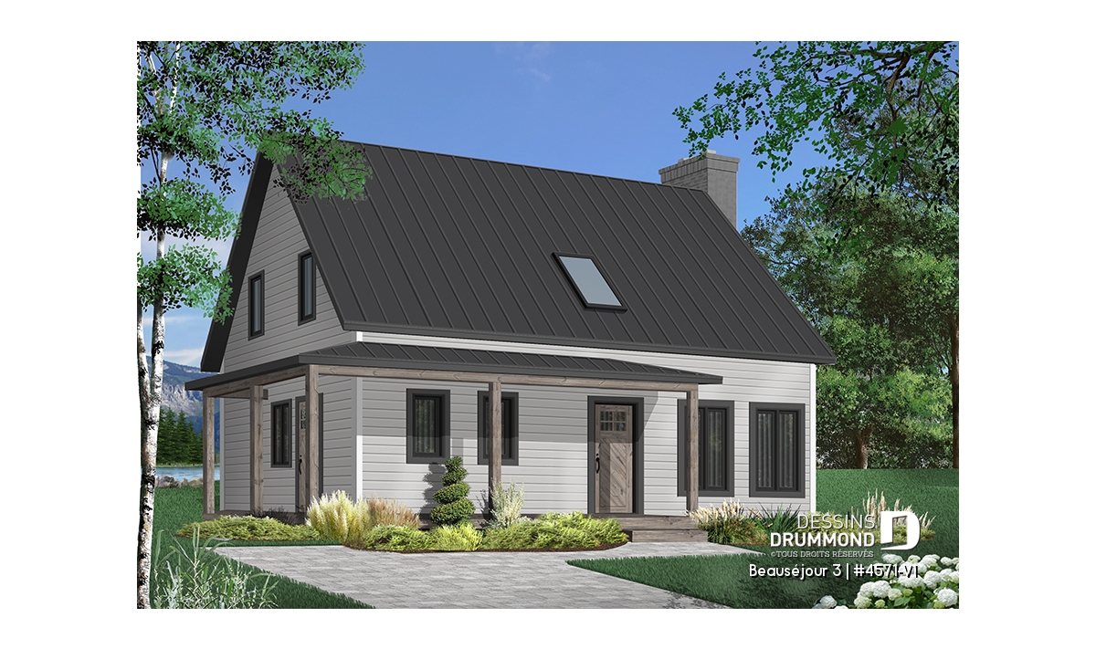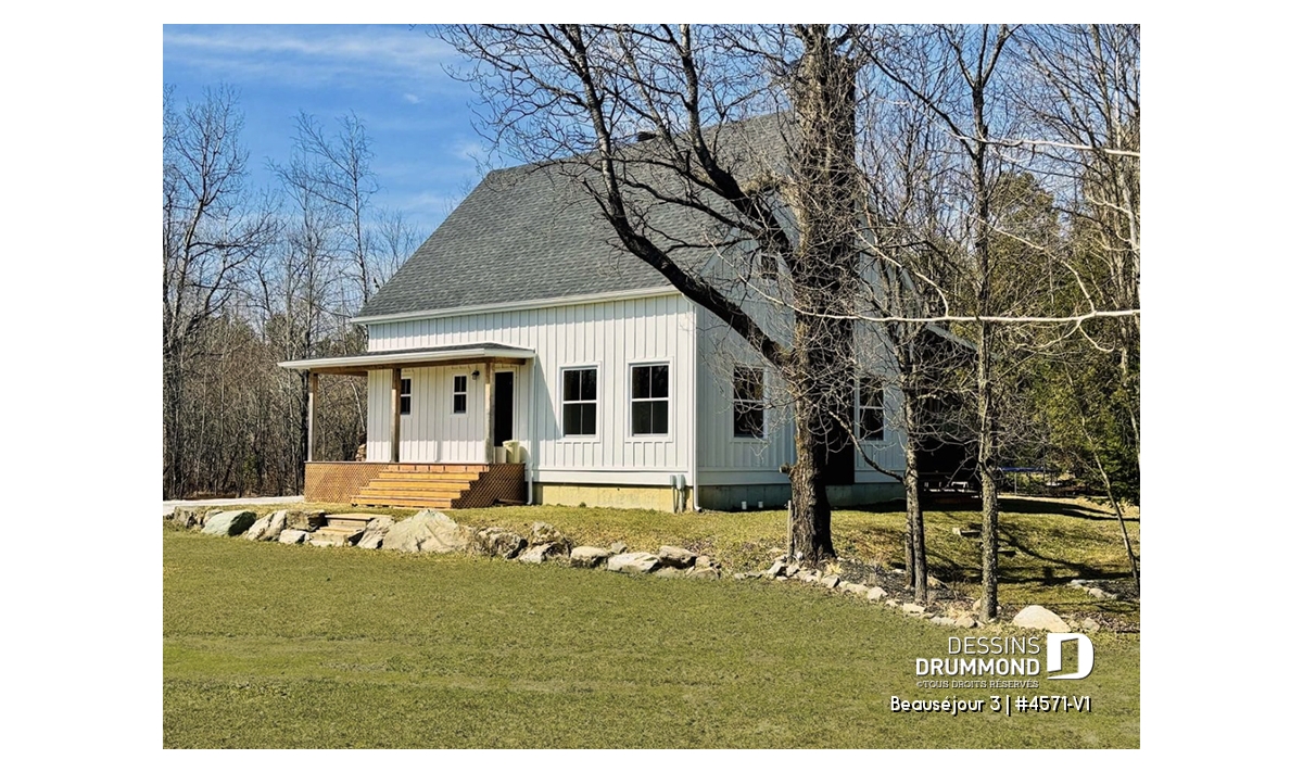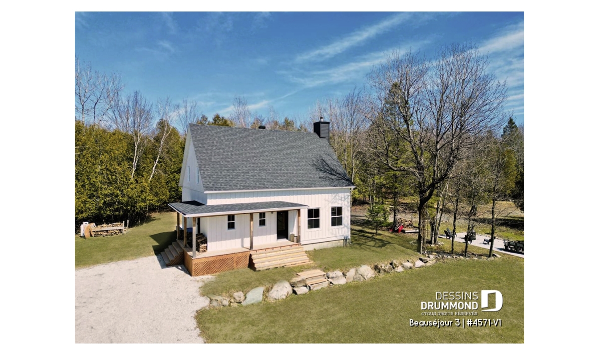 Impossible de ne pas tomber en amour avec ce nouveau plan de maison champêtre, nommé Beauséjour 3 ou plan no. 4571-V1. Elle offre une multitudes de balcons couverts, un foyer traditionnel de brique rouge, un toit de tôle foncé très tendance ainsi que des teintes recherchées cette année soit le gris foncé amalgamés à des tons de blanc et de bois. D’emblée je vous mentionne aussi, et non visible sur l’image avant, un très grand patio couvert à l’arrière, suffisamment grand pour recevoir une cuisine extérieure, une table et 6 chaises ainsi qu’un coin séjour lounge vous permettant d’apprécier votre cour arrière tout en étant confortablement bien installés à l’abri des intempéries.