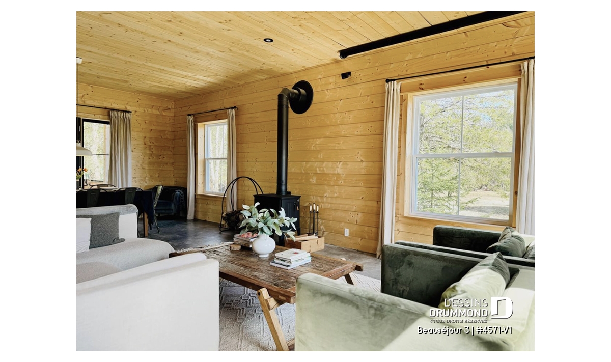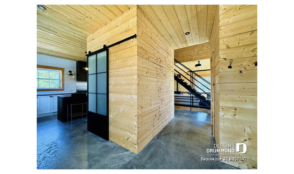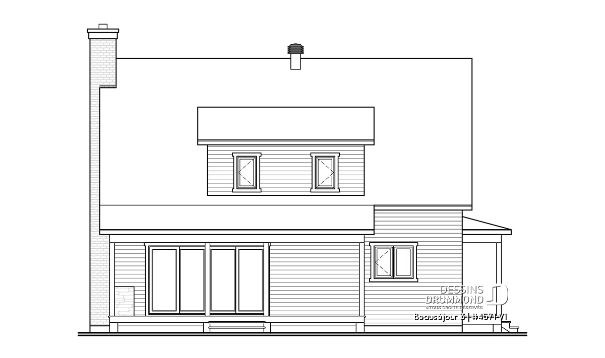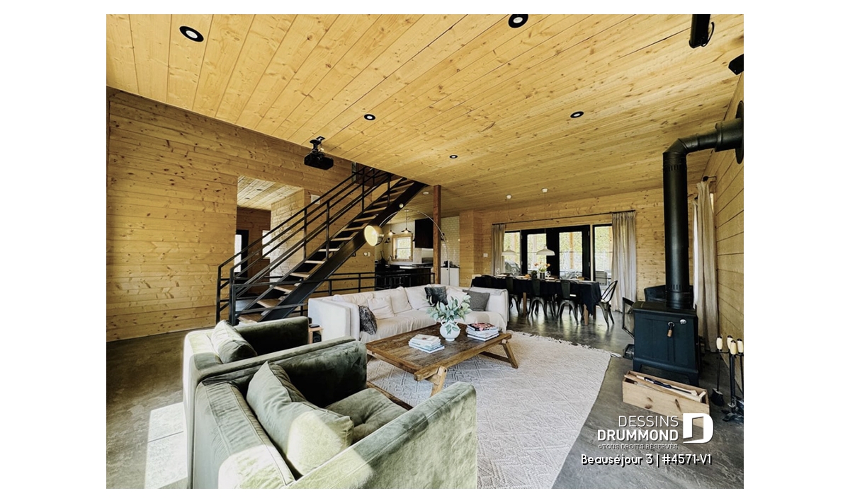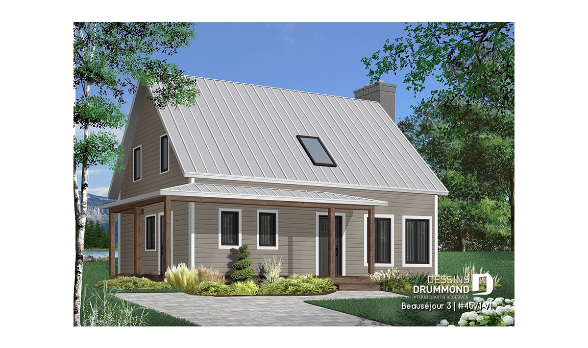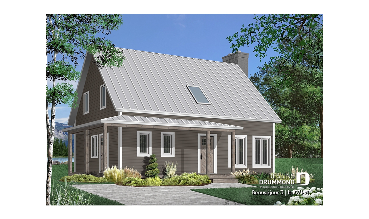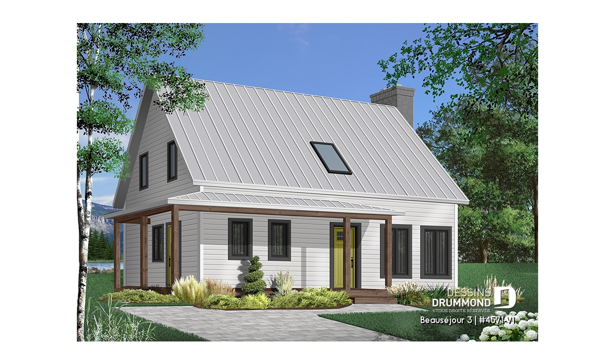 Impossible de ne pas tomber en amour avec ce nouveau plan de maison champêtre, nommé Beauséjour 3 ou plan no. 4571-V1. Elle offre une multitudes de balcons couverts, un foyer traditionnel de brique rouge, un toit de tôle foncé très tendance ainsi que des teintes recherchées cette année soit le gris foncé amalgamés à des tons de blanc et de bois. D’emblée je vous mentionne aussi, et non visible sur l’image avant, un très grand patio couvert à l’arrière, suffisamment grand pour recevoir une cuisine extérieure, une table et 6 chaises ainsi qu’un coin séjour lounge vous permettant d’apprécier votre cour arrière tout en étant confortablement bien installés à l’abri des intempéries.