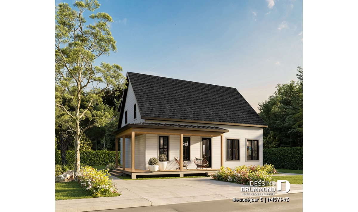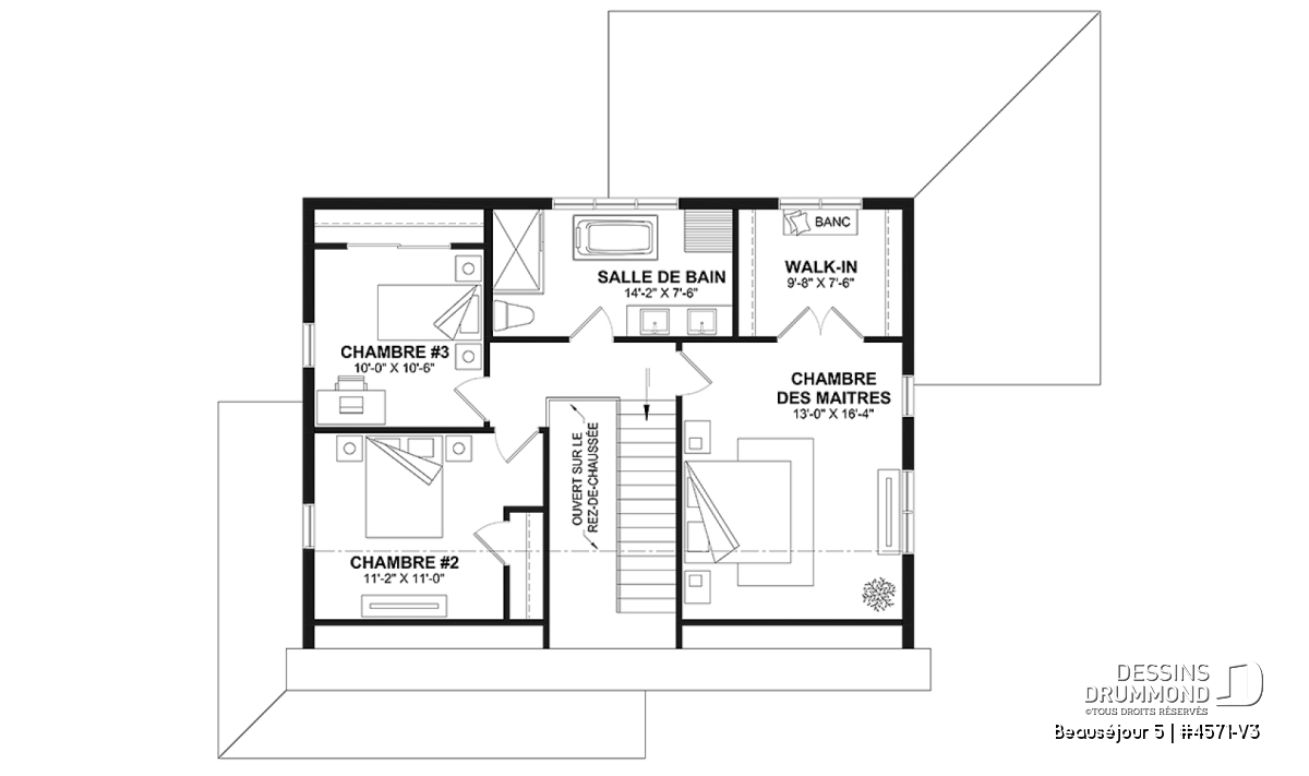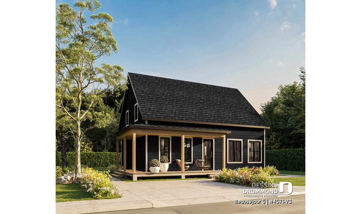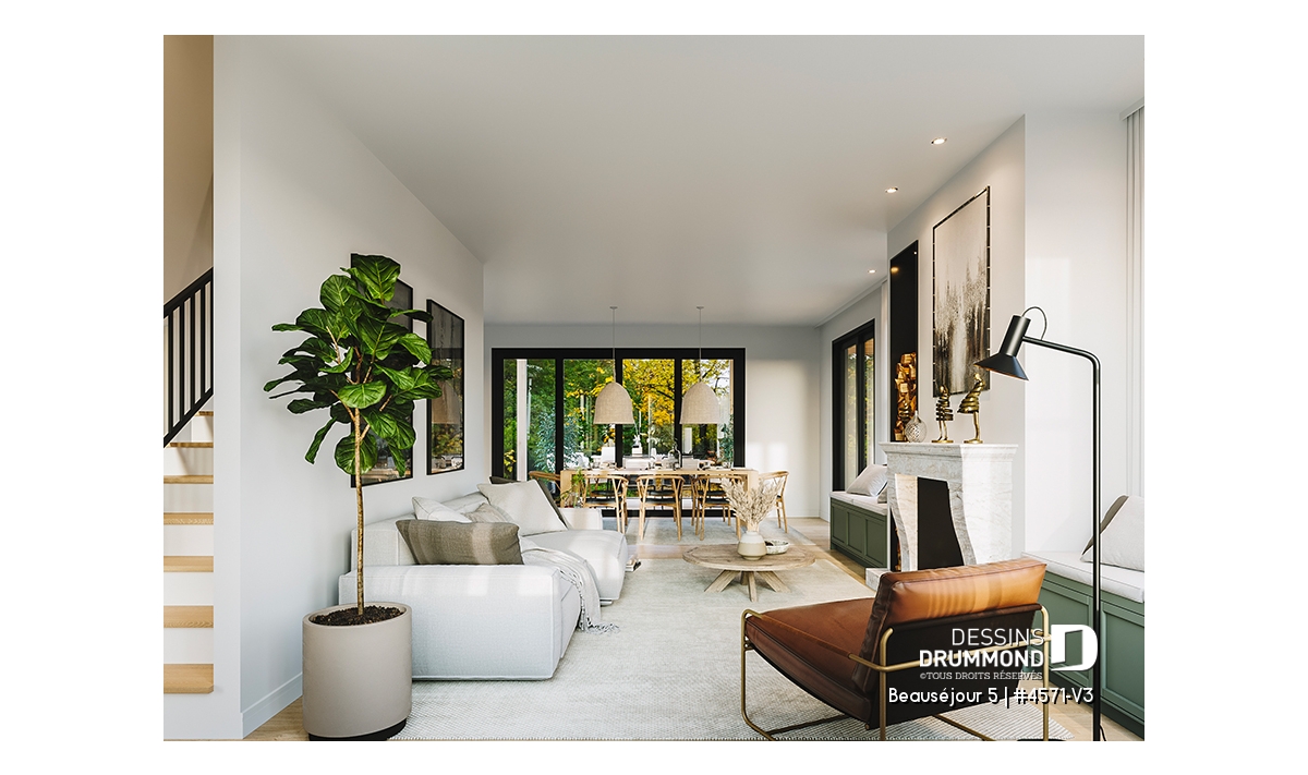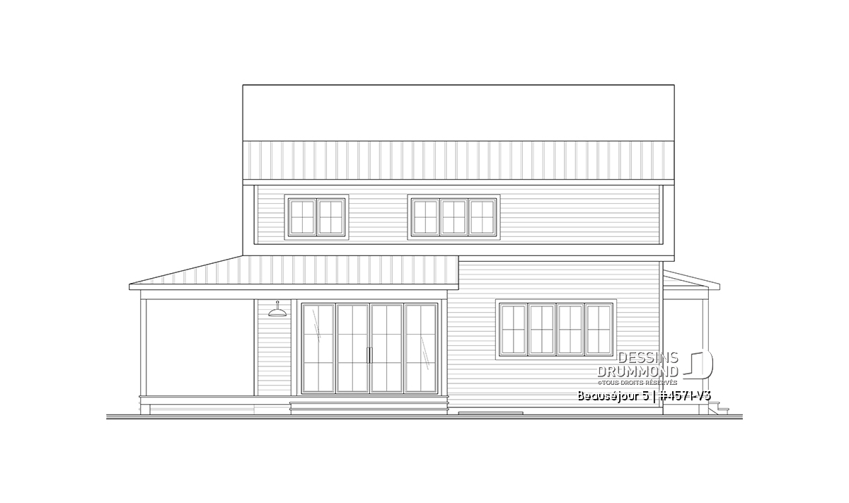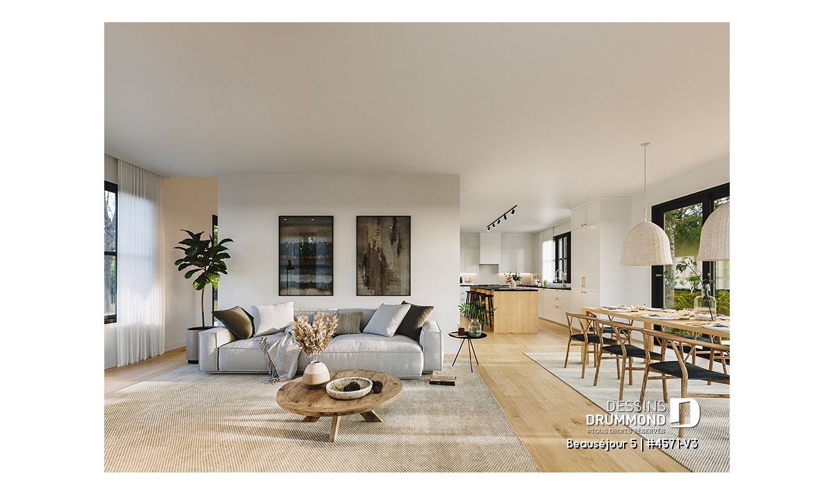 Le plan de maison BEAUSÉJOUR 5 (#4571-V3) propose 2826 pieds carrés aménagés sur 3 planchers, incluant un *sous-sol aménagé optionnel ($). Il est à noter que tous les planchers du rez-de-chaussée sont à 9' de hauteur et qu'il y a des plafonds en pente à la chambre des maîtres et également à la chambre #2.