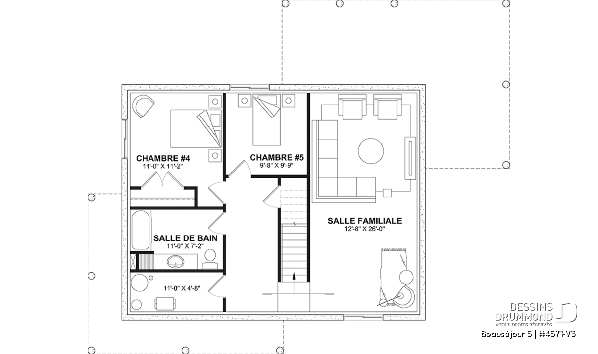 *Si vous souhaitez acheter le plan du sous-sol aménagé, tel que présenté sur la page de ce plan, veuillez sélectionner cette option dans le panier d'achat, dans la section "Sélectionner votre fondation". Si vous ne sélectionnez pas cette option, vous recevrez le sous-sol non fini, sans frais additionnel.