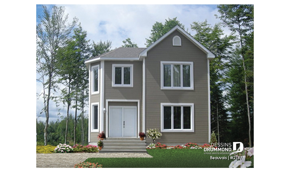 Version couleur no. 1 - Vue avant - Plan maison abordable, 3 chambres, salle de lavage au r-d-c, 1.5 salleS de bain - Beauvais