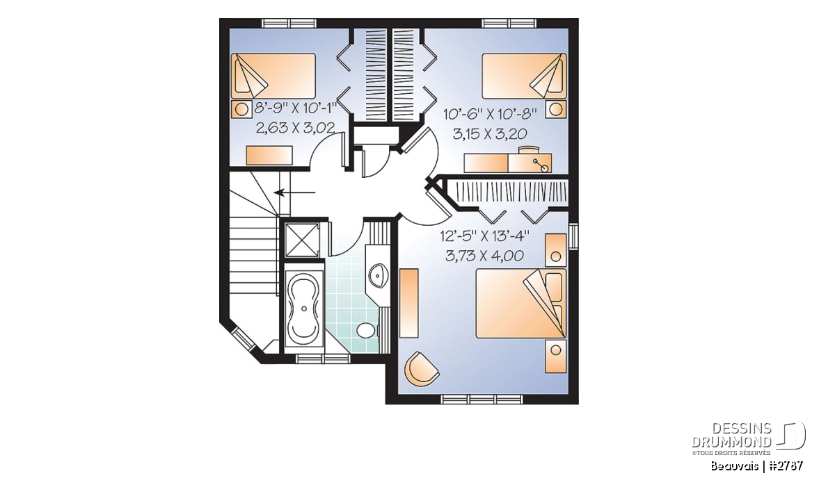 Étage option 1 - Plan maison abordable, 3 chambres, salle de lavage au r-d-c, 1.5 salleS de bain - Beauvais