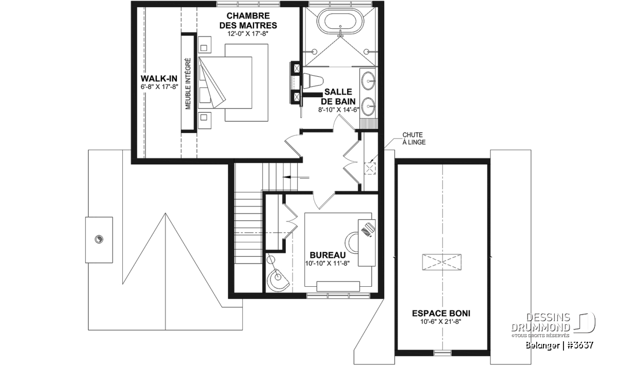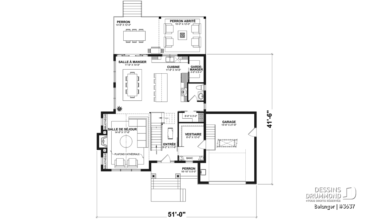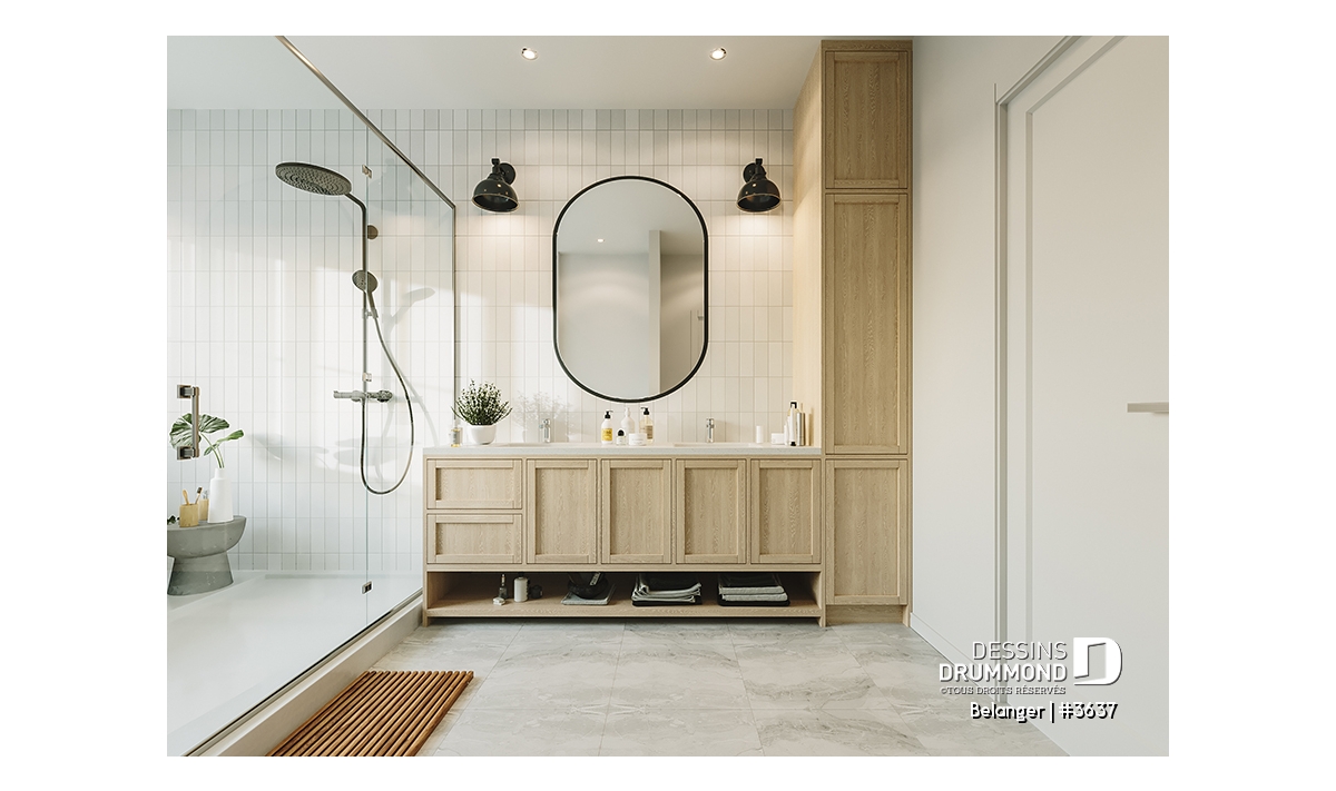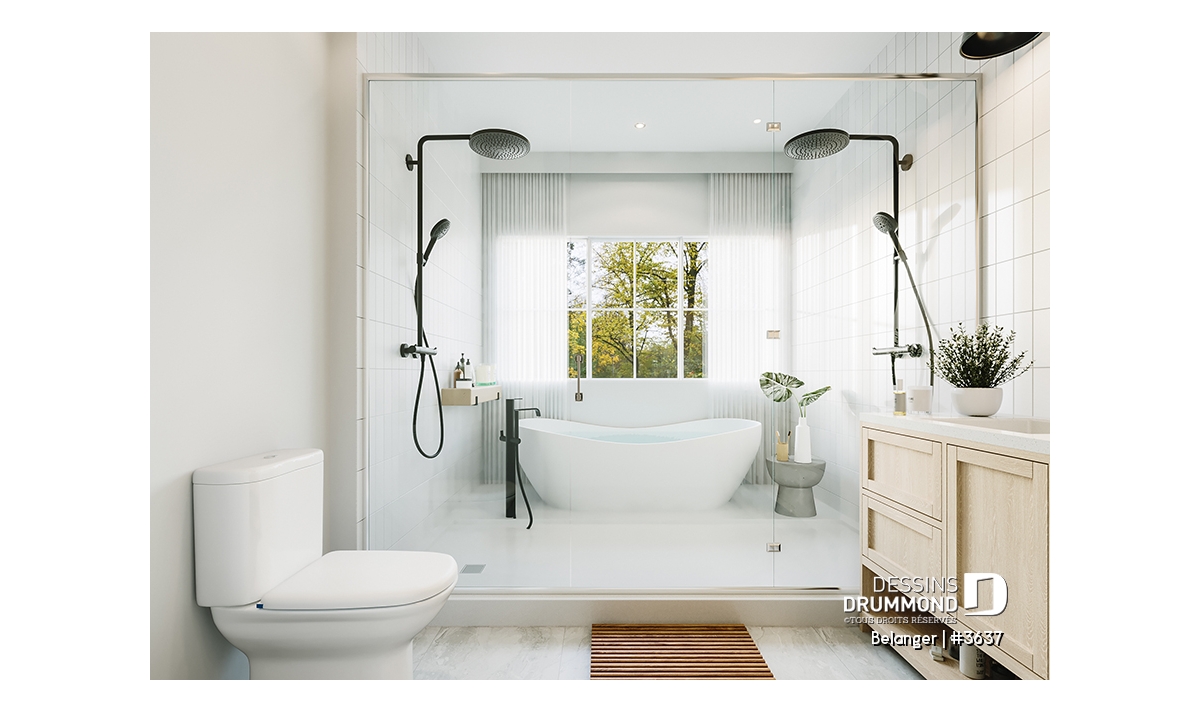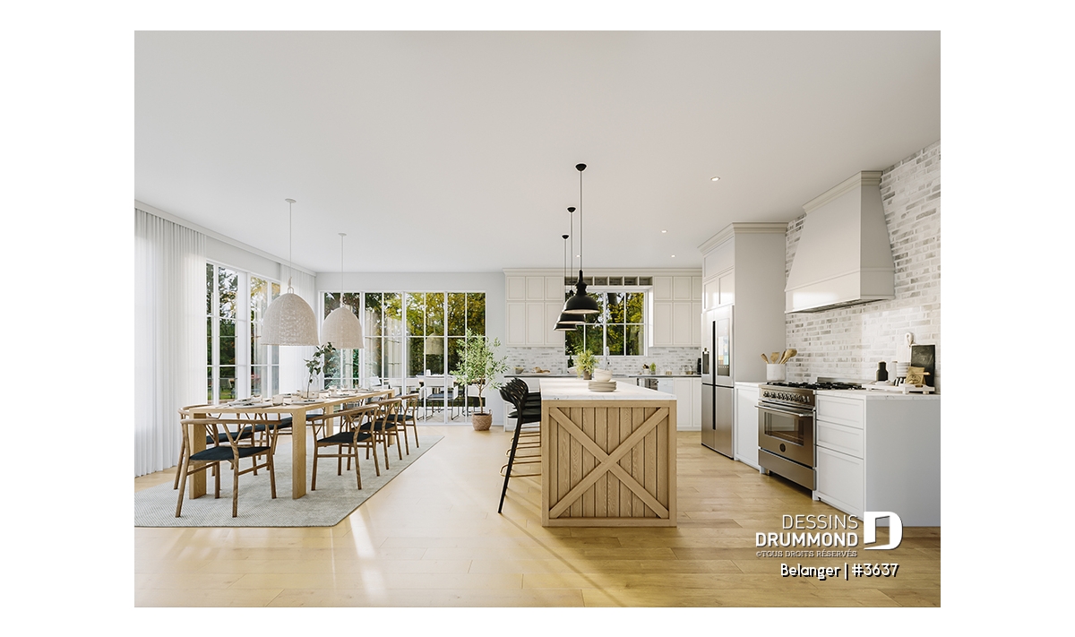 Le magnifique et spacieux plan de maison BELANGER (#3637) propose 3012 pi.ca., en plus d'un garage et d'une grande terrasse arrière partiellement abritée. À noter que les plafonds du rez-de-chaussée sont tous à 9' à l'exception du plafond de la salle de séjour qui lui est cathédrale, et à 17' de hauteur!