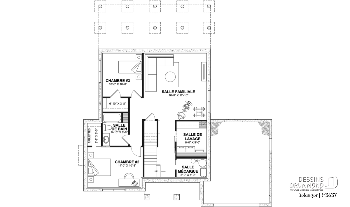*Si vous souhaitez acheter le plan du sous-sol aménagé, tel que présenté sur la page de ce plan, veuillez sélectionner cette option dans le panier d'achat, dans la section "Sélectionner votre fondation". Si vous ne sélectionnez pas cette option, vous recevrez le sous-sol non fini, sans frais additionnel.