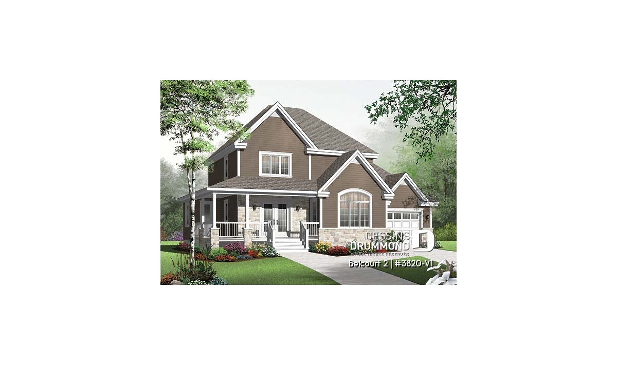 Déjà très populaire, le cottage 3820, que vous êtes en mesure d’apprécier en photos extérieures et intérieures et en différentes suggestions couleur, le deviendra encore possiblement davantage avec ce modèle 3820-V1 pour lequel un agrandissement de la maison et un agrandissement significatif du garage se veulent un ajout au confort de celle-ci et un véritable atout quand on s’attarde au format du nouveau garage.