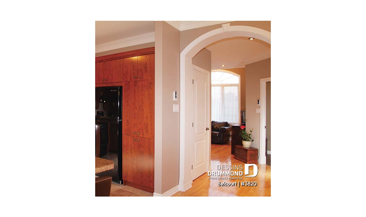 Souvent localisé au-dessus du garage, le rangement boni est utilisé uniquement comme rangement et il est généralement accessible du garage via un escalier escamotable. De plus, la finition de ce rangement boni est toujours INCLUSE dans nos estimation du coût de construction, sauf si avis contraire dans les sections « Description et/ou Éléments descriptifs » de la page du plan.