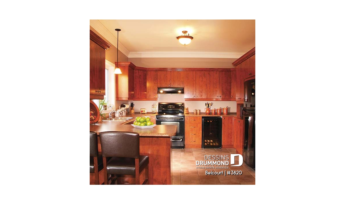 Accès au sous-sol du garage, Plafond cathédrale, Vestibule, Salle de lavage au rez-de-chaussée, Comptoir-lunch, Walk-in ch. maîtres, Bain et douche séparés