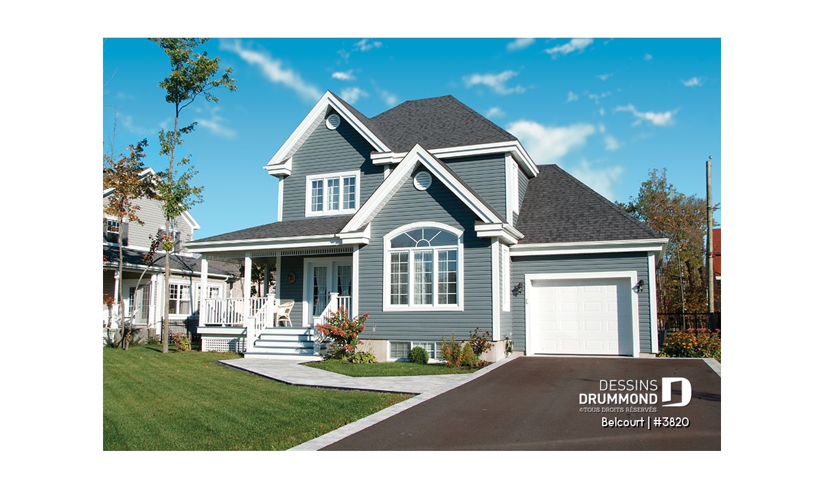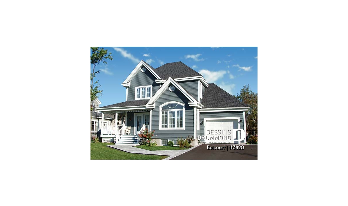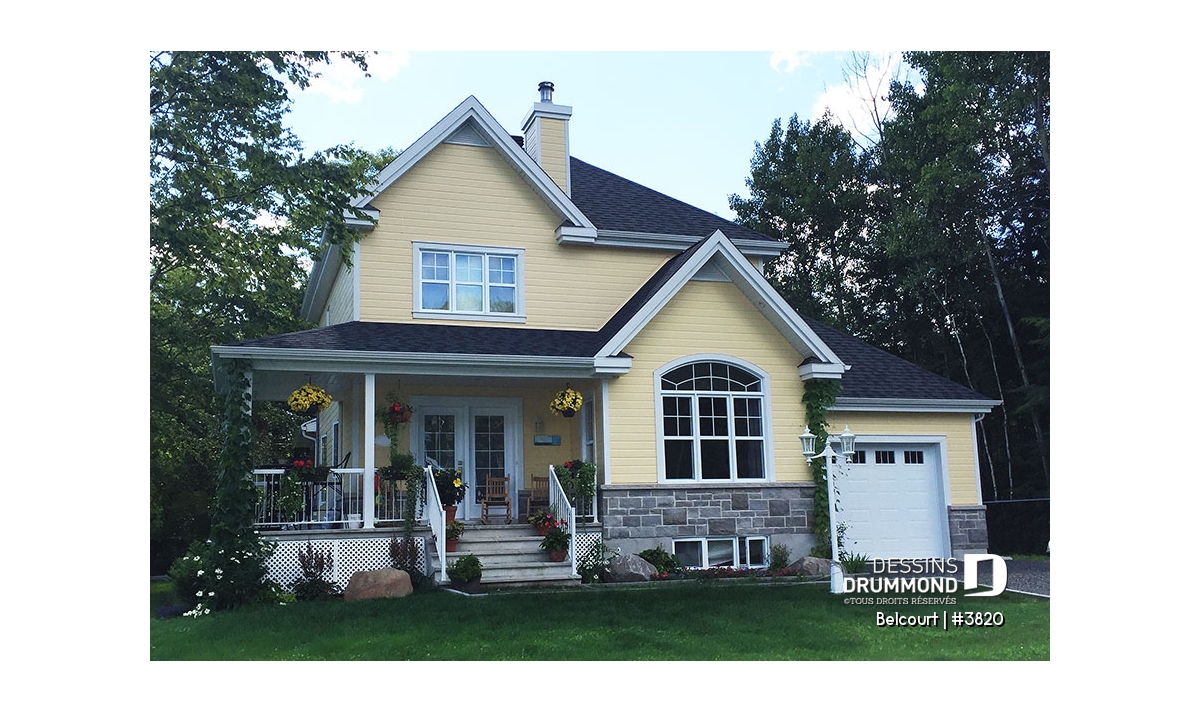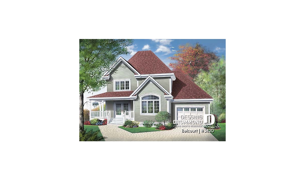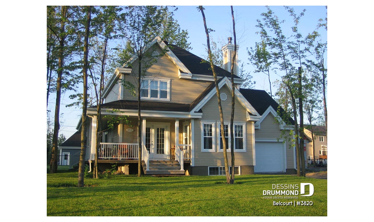 Plan de maison champêtre économique, 3 chambres, garage et sous-sol aménageable