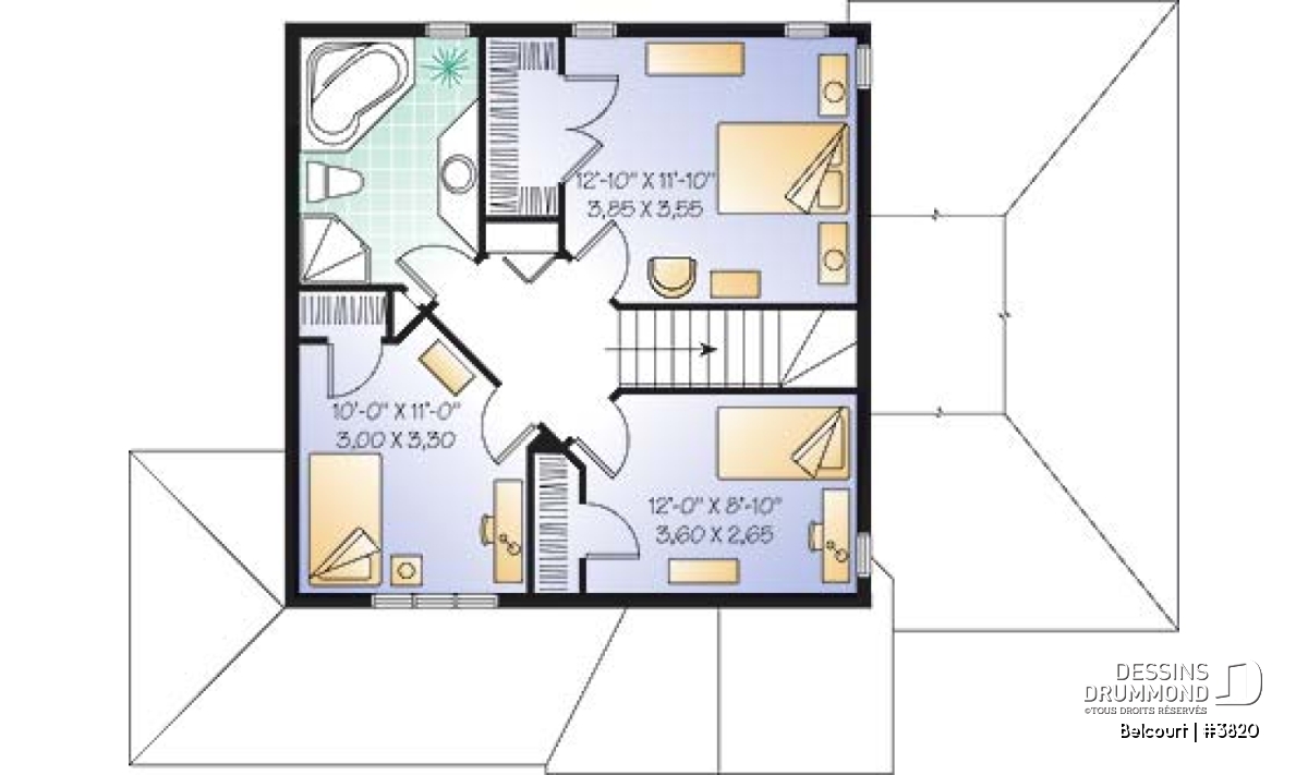 L'espace boni aménageable est généralement prévu au-dessus du garage et il est accessible de la maison. Comme il est prévu aménageable, il pourra devenir un bureau, un espace buanderie, une salle de bain, un coin bibliothèque ou même une chambre additionnelle pour laquelle les propriétaires devront s'assurer d'avoir une fenêtre conforme aux normes en vigueur. De plus, la finition de cette espace boni est toujours INCLUSE dans nos estimation du coût de construction, sauf si avis contraire dans les sections « Description et/ou Éléments descriptifs » de la page du plan.
