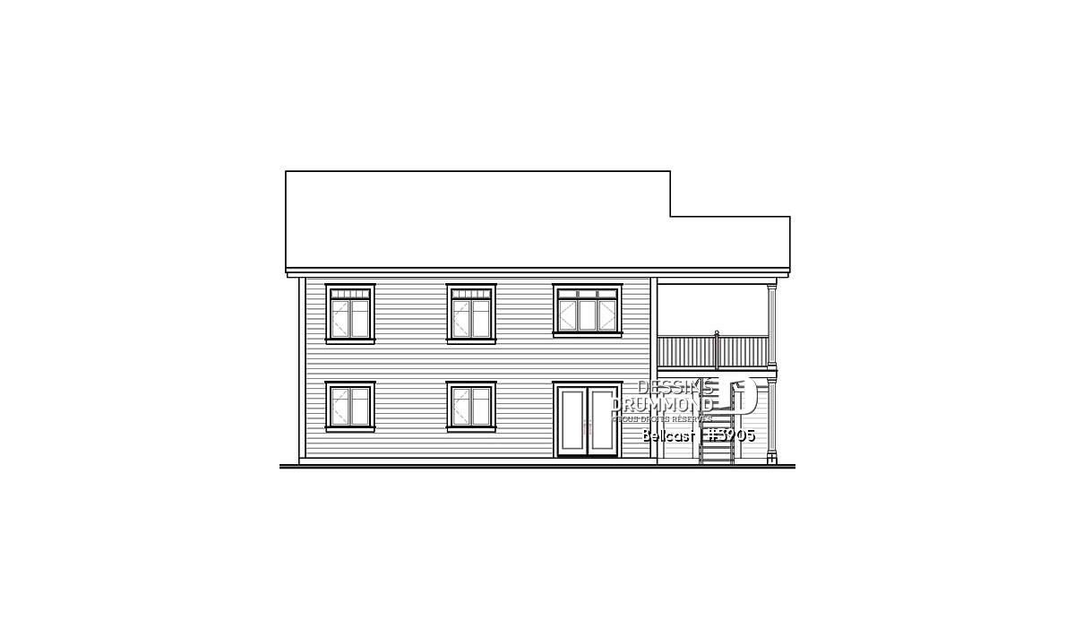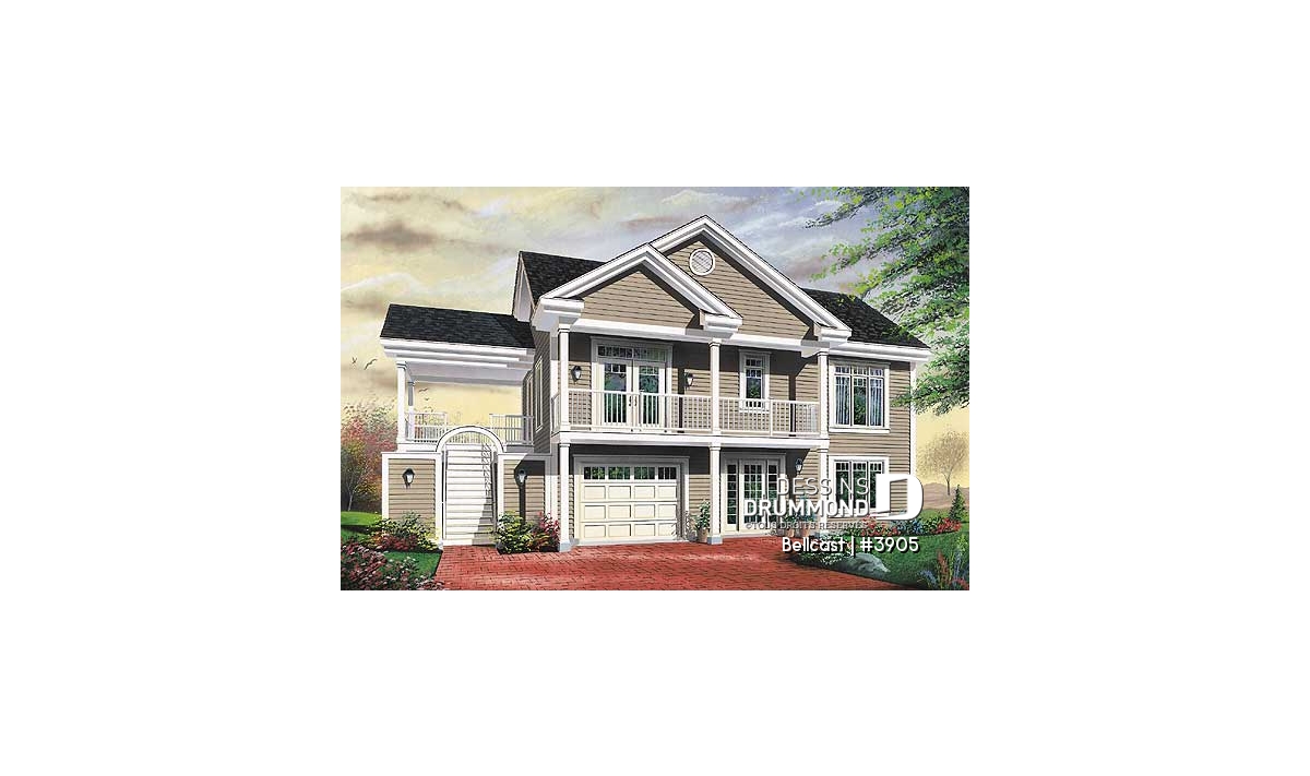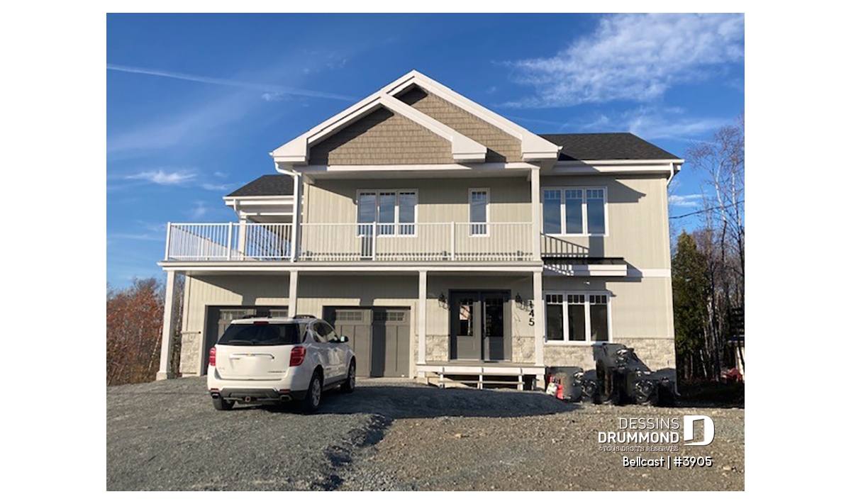 Vue avant - MODÈLE DE BASE - Plan de chalet, planchers inversés, 2 salon, bureau double, plafond 9', 3 à 4 chambres, grande terrasse - Bellcast