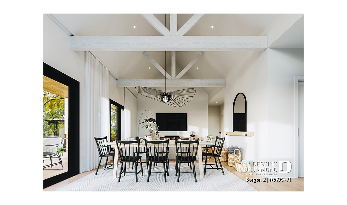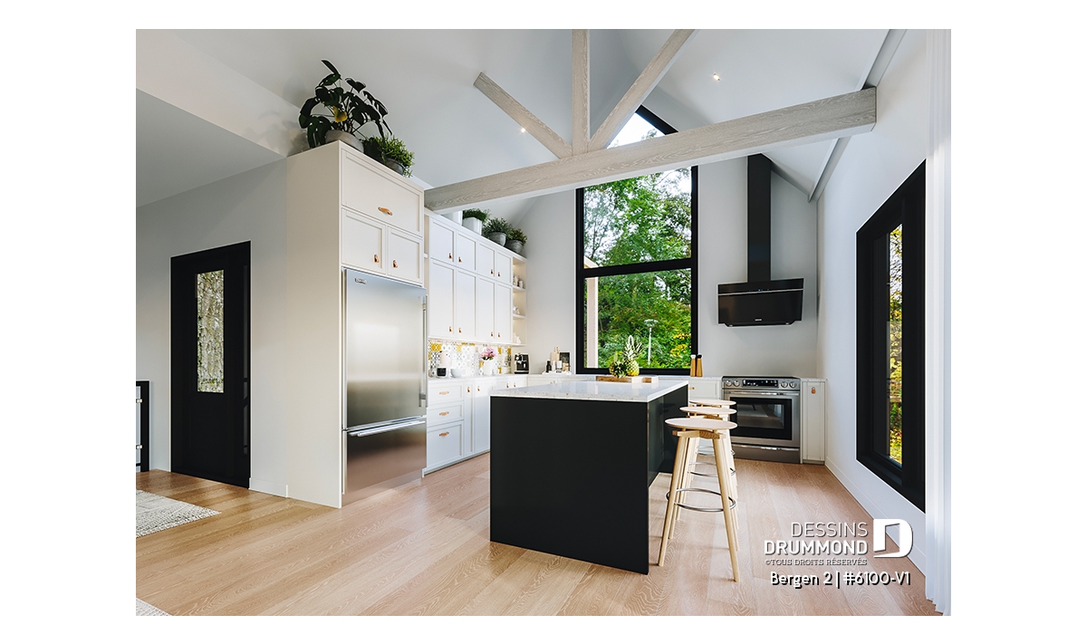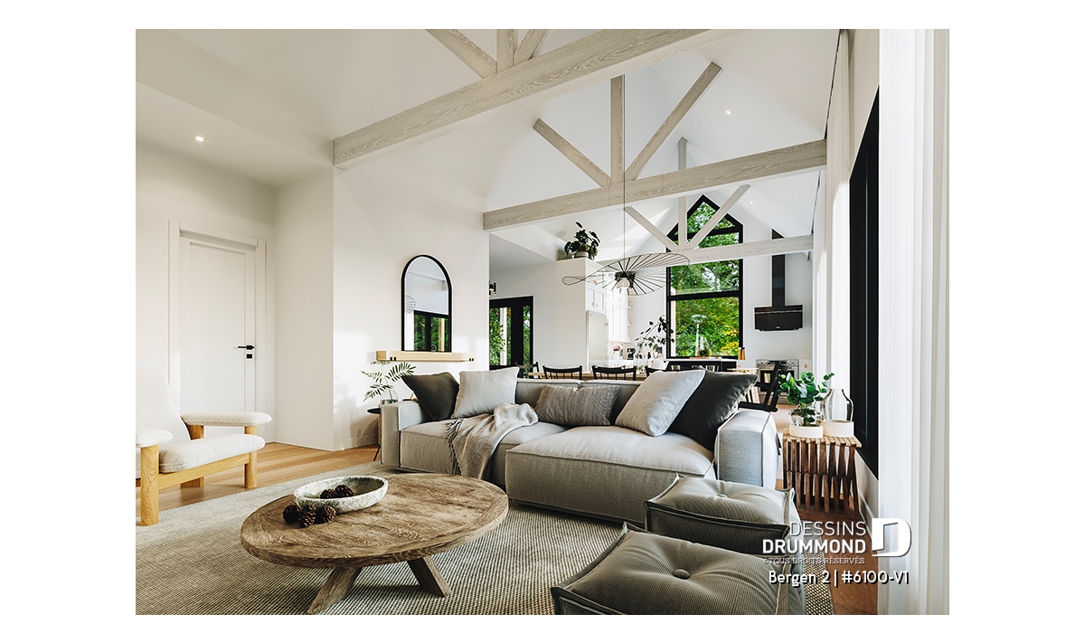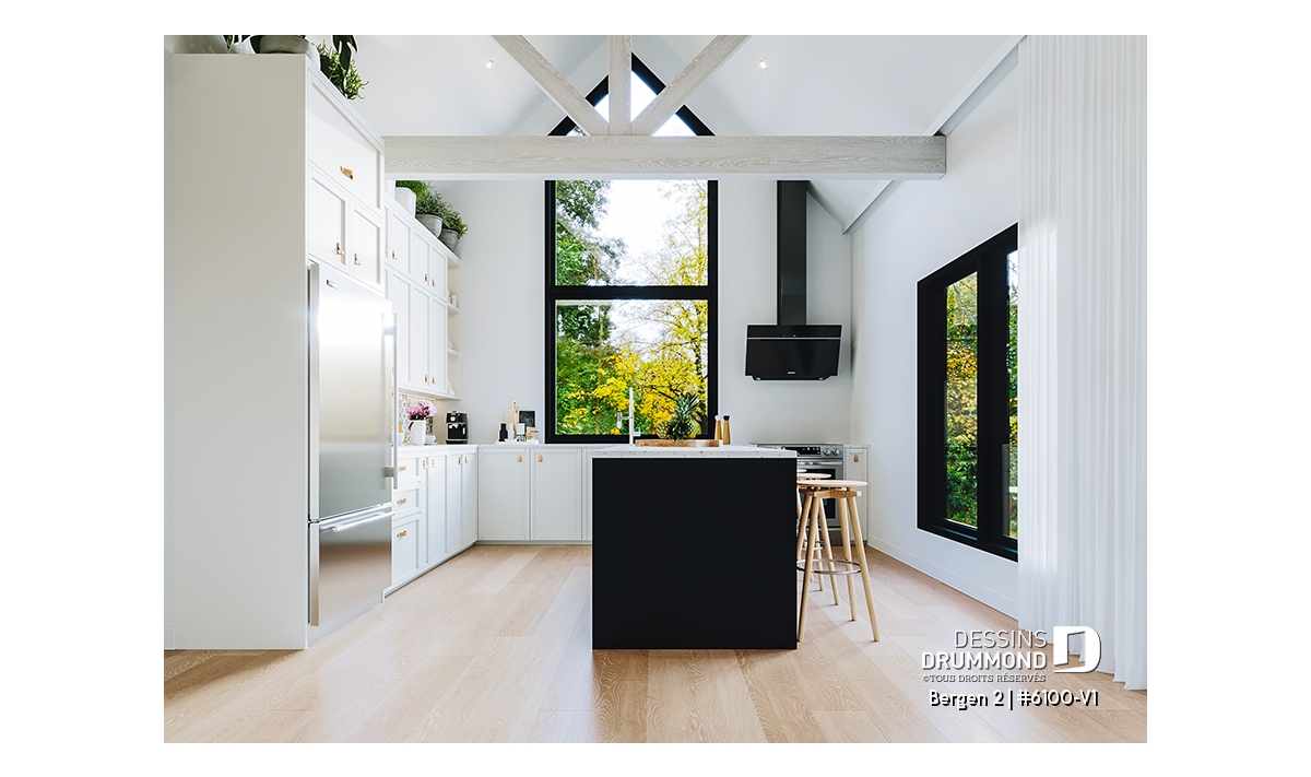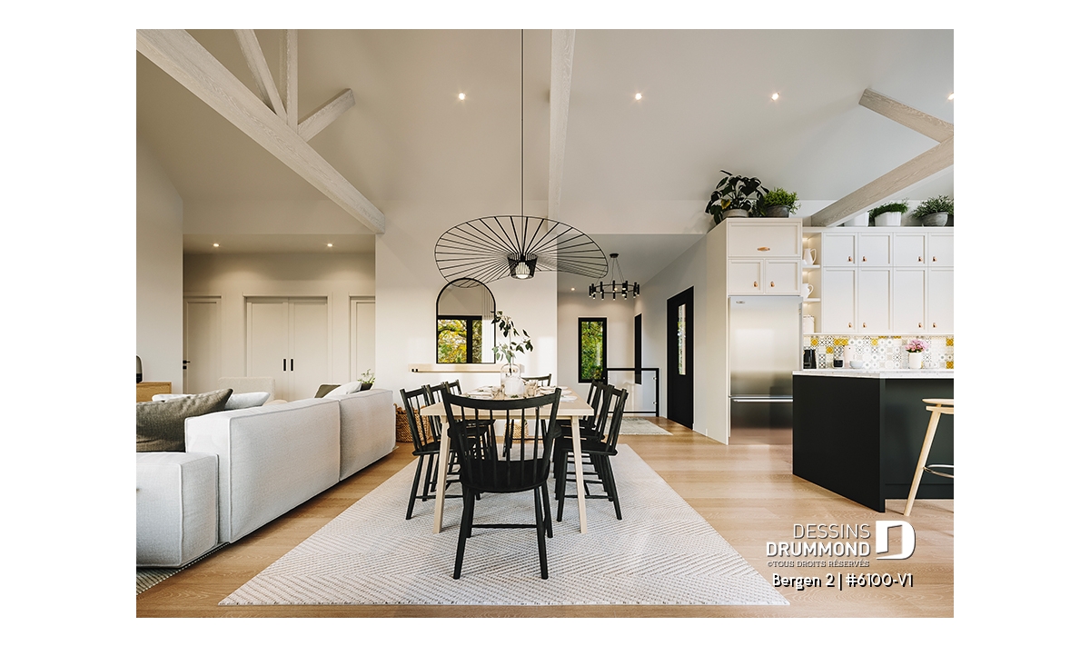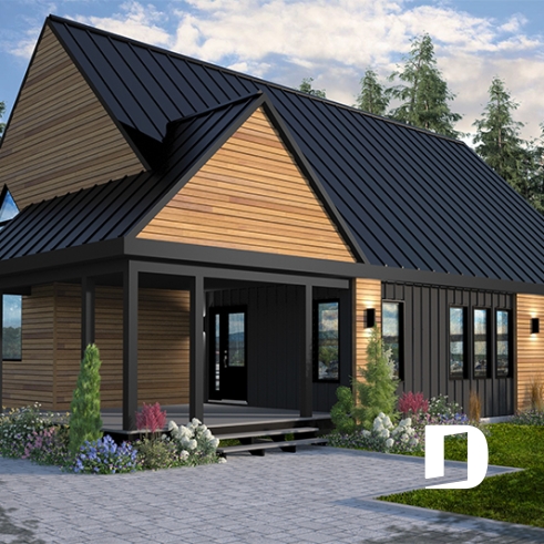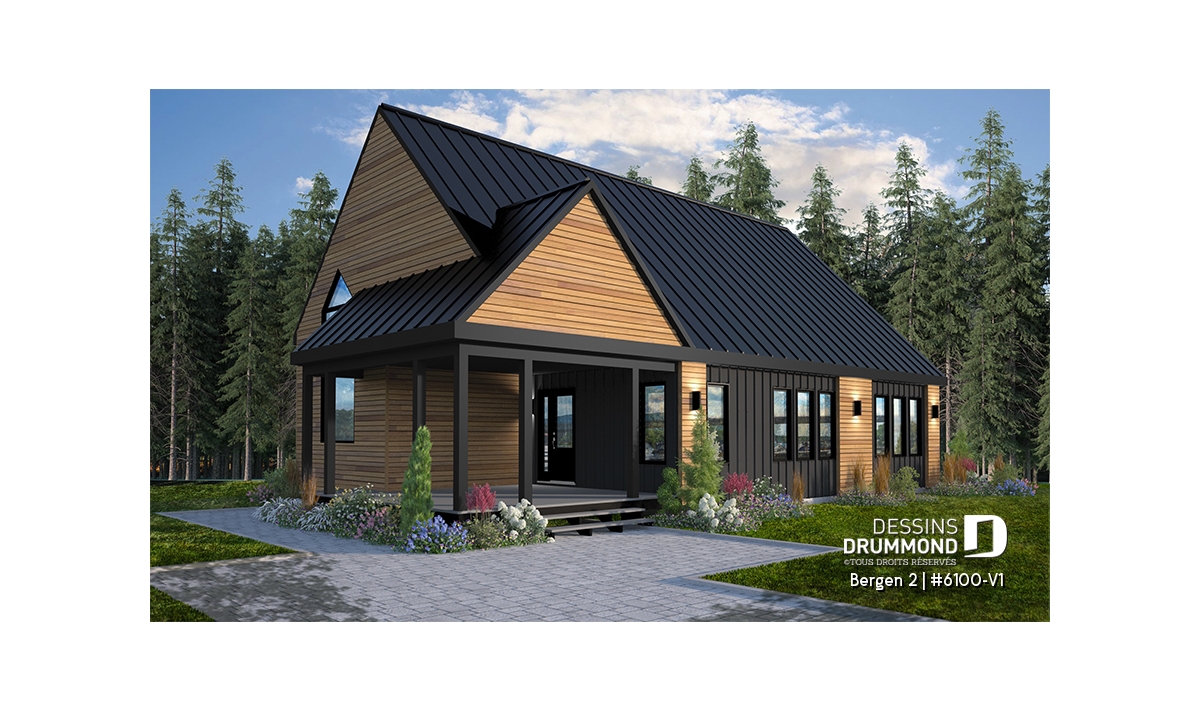 Le plan de maison Bergen 2 (#6100-V1) propose 1260 pi.ca. aménagés sur un seul plancher, excluant le sous-sol qui est non-fini. Cette maison de style Scandinave est une version légèrement retravaillée de son modèle de base, Bergen (#6100).