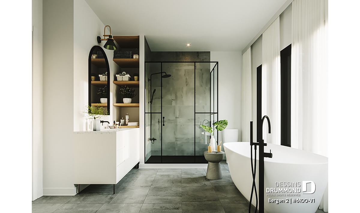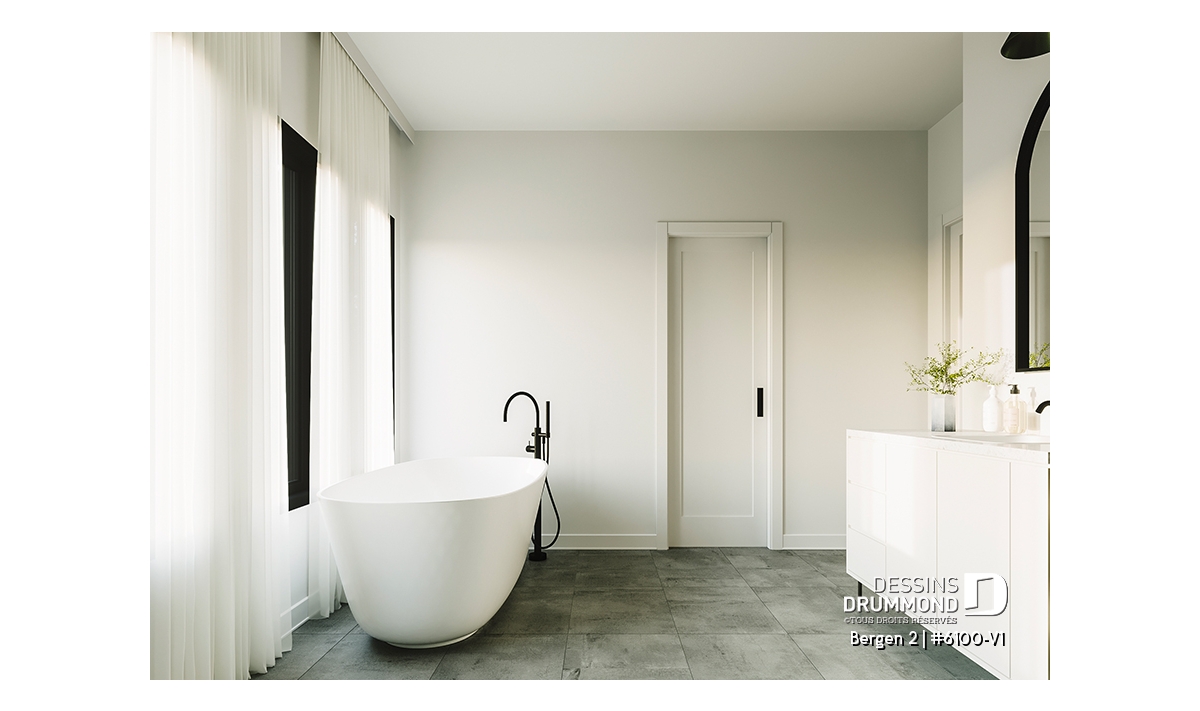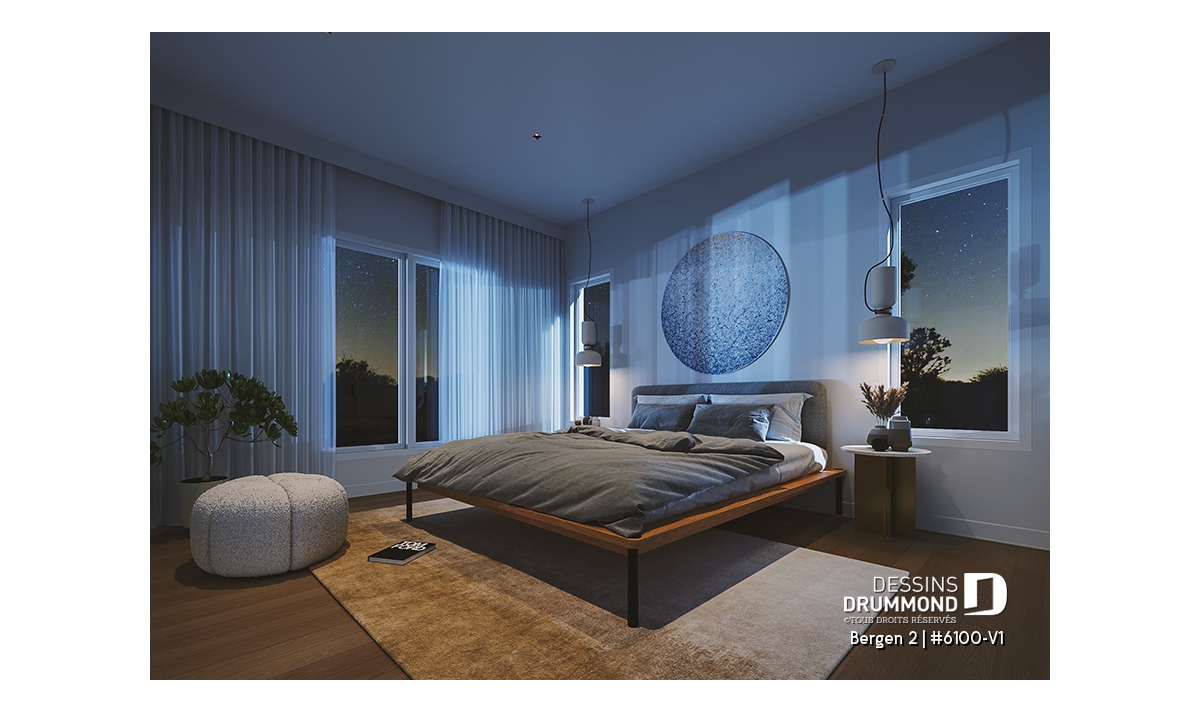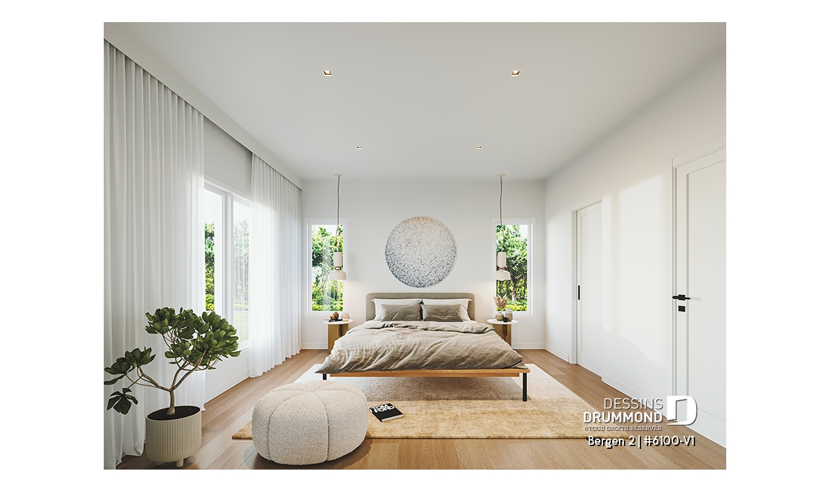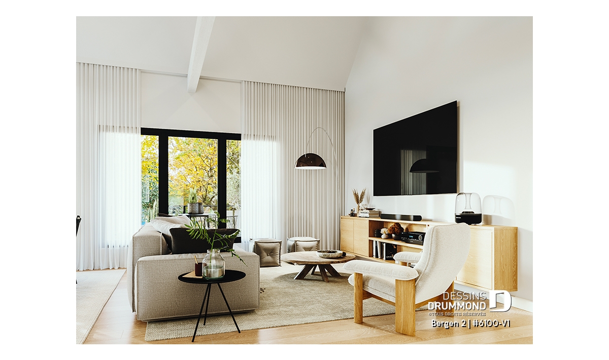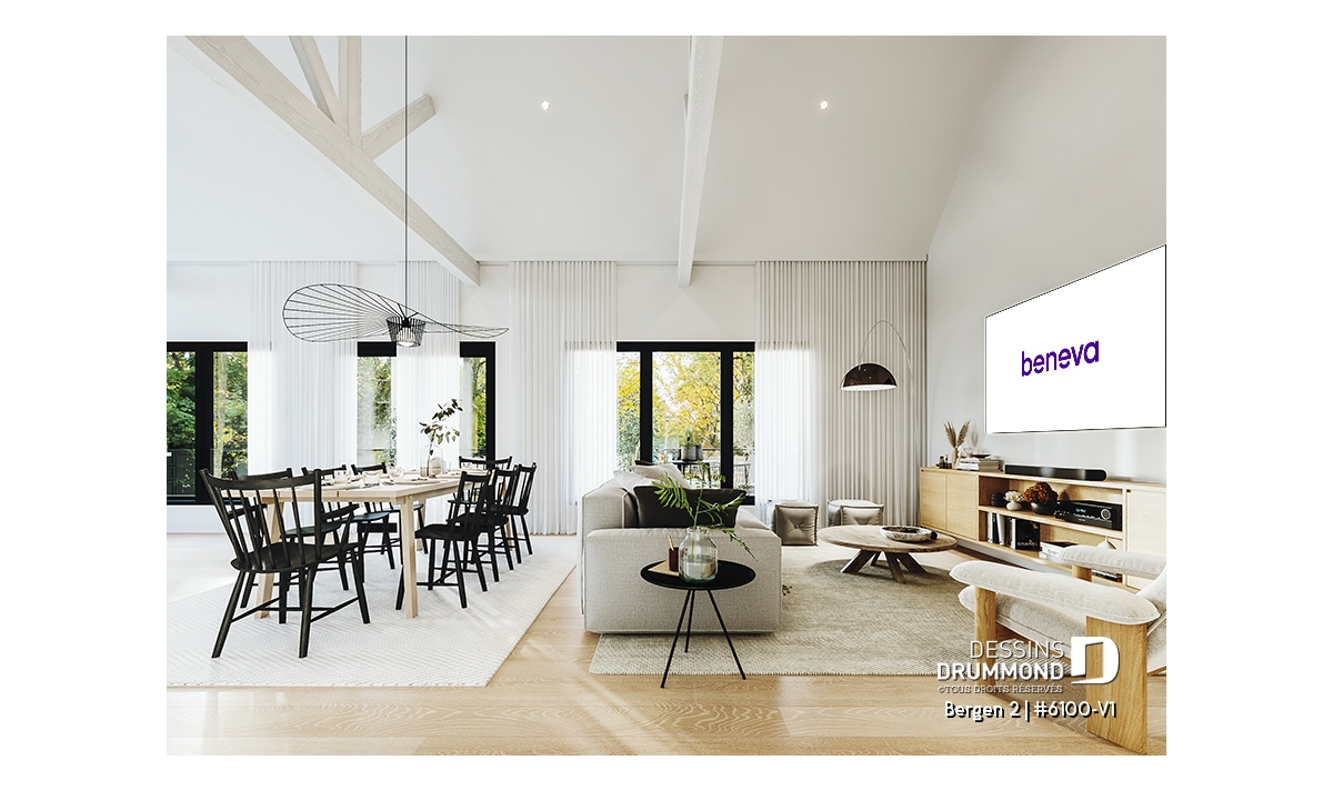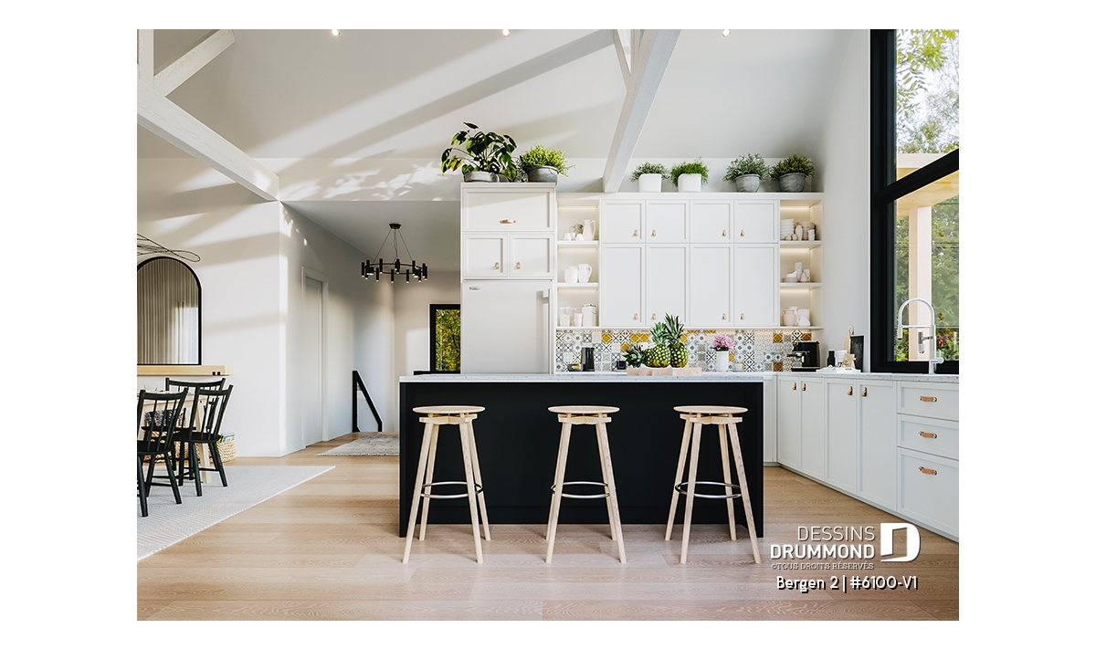 Le plan de maison Bergen 2 (#6100-V1) propose 1260 pi.ca. aménagés sur un seul plancher, excluant le sous-sol qui est non-fini. Cette maison de style Scandinave est une version légèrement retravaillée de son modèle de base, Bergen (#6100).